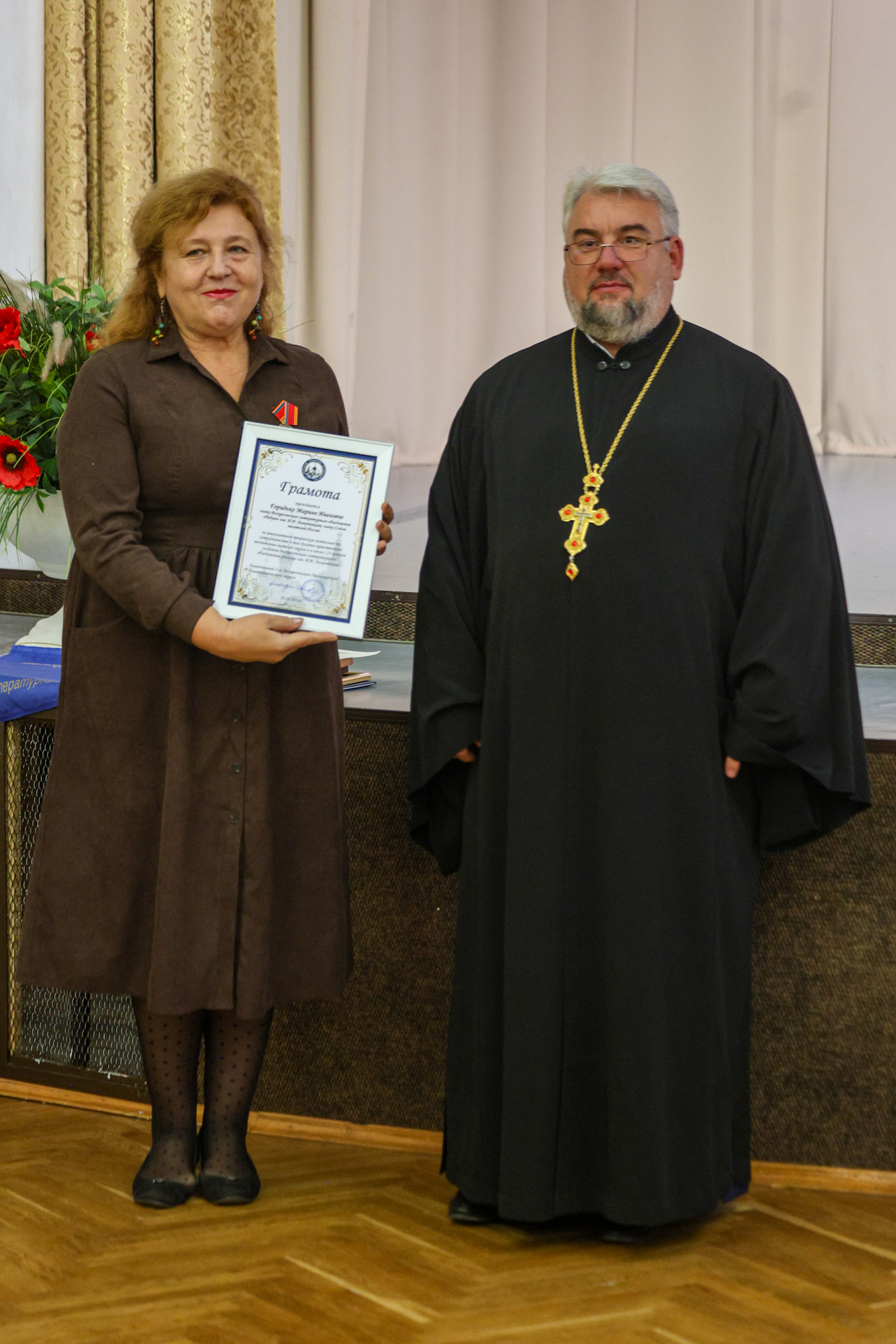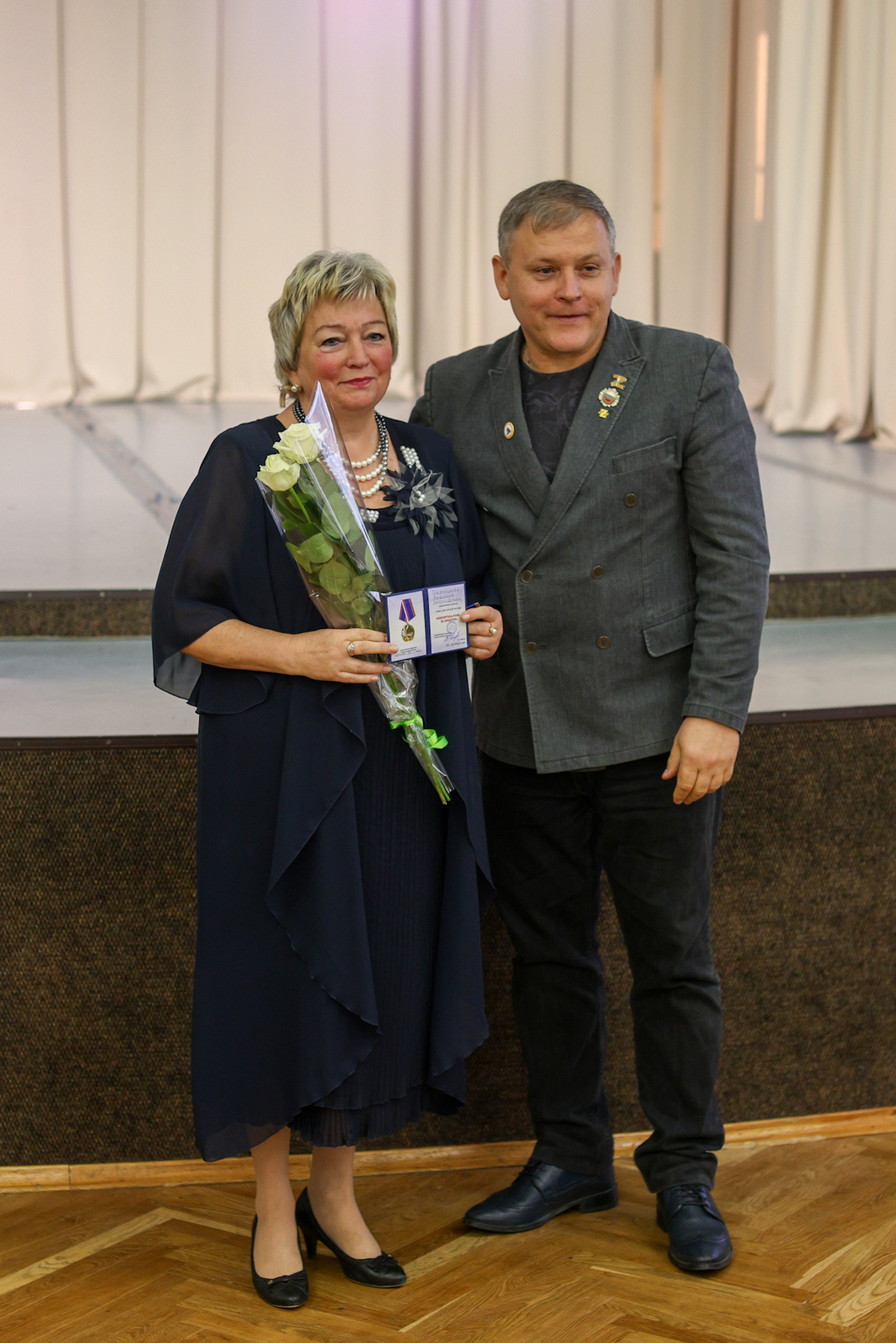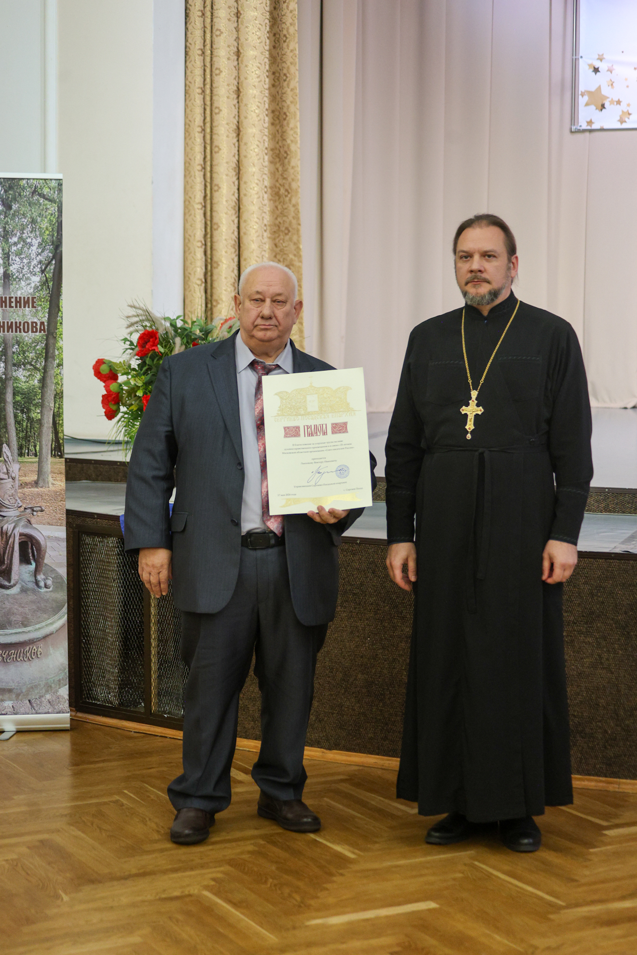 Благодарственное письмо депутата Московской областной Думы Екатерины Александровны Лобышевой вручил Почётный гражданин городского округа Воскресенск, председатель совета ветеранов войны, труда, Вооружённых сил и правоохранительных органов Василий Феодосьевич Дацюк.