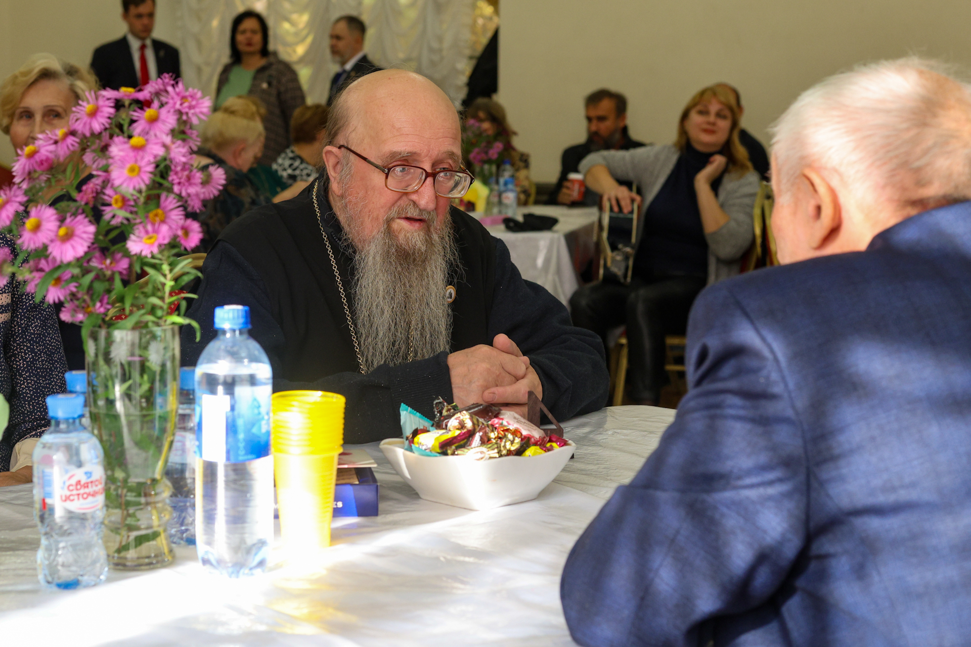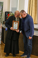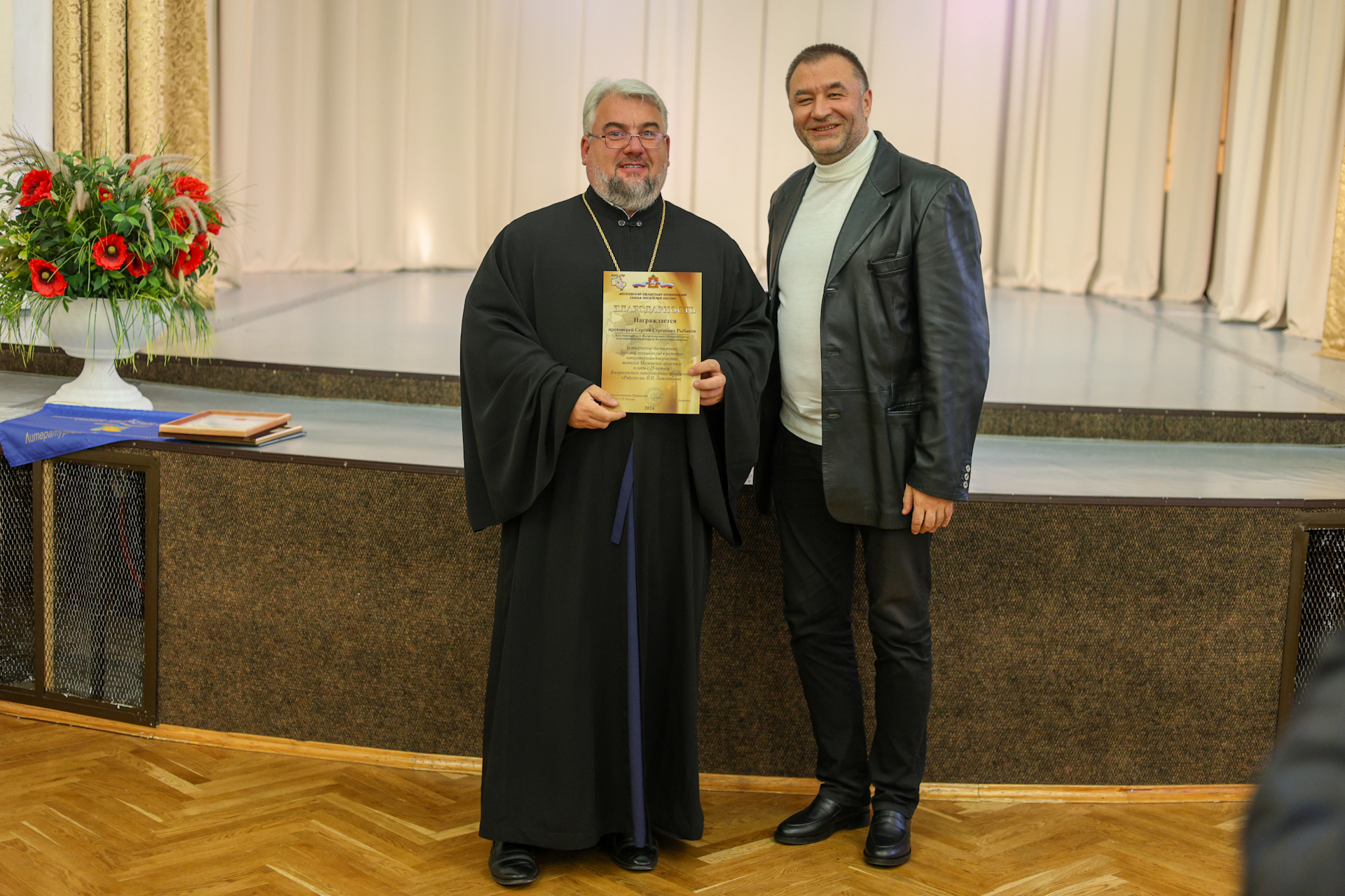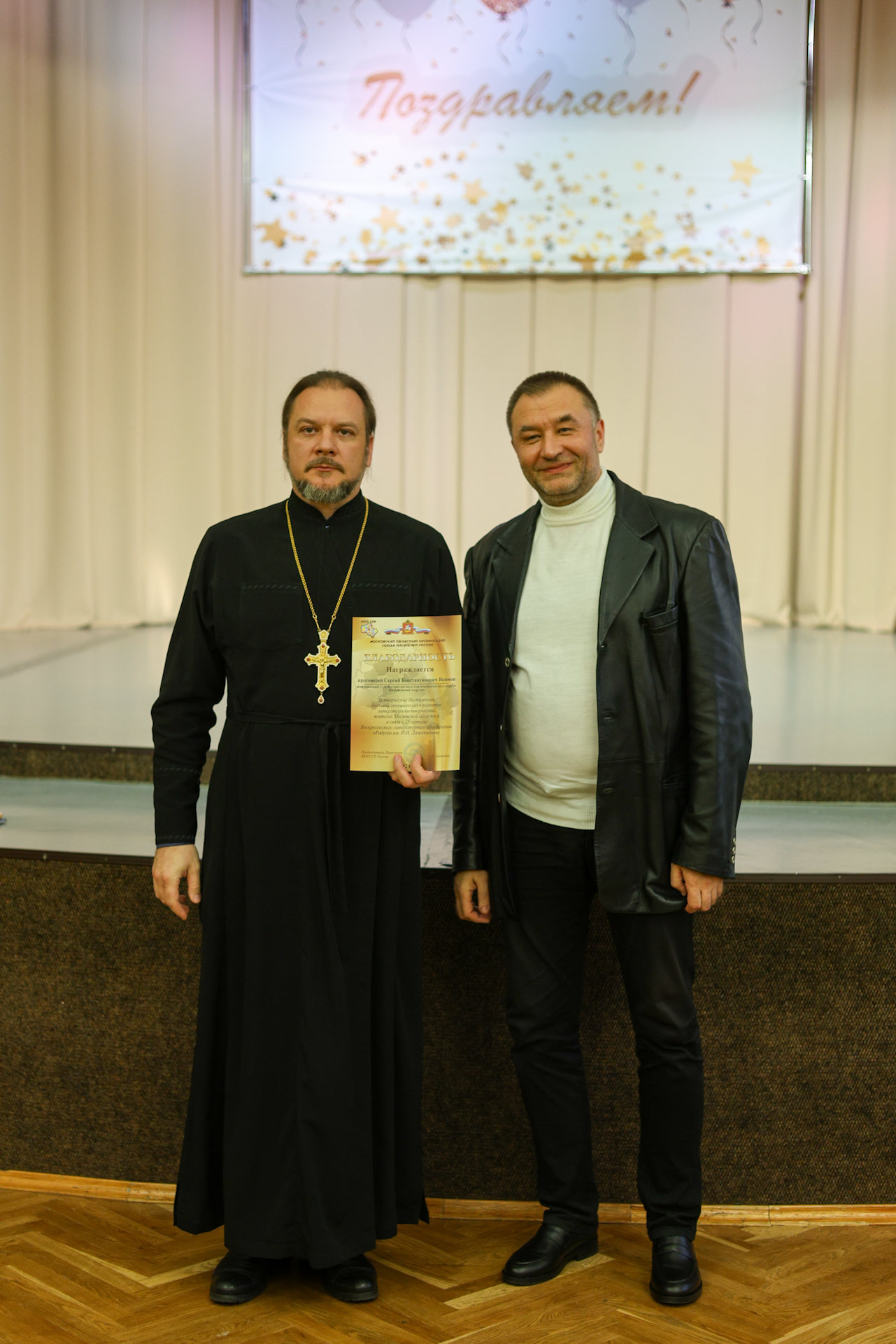 Литераторов поздравили заведующий отделом по работе с литературными объединениями Московской губернской универсальной библиотеки Елена Анатольевна Гладилина, благочинный 1-го Воскресенского благочиннического округа Коломенской епархии протоиерей Сергий Якимов и благочинный 2-го Воскресенского (Белоозёрского) благочиннического округа Коломенской епархии протоиерей Сергий Рыбаков. Священники вручили литераторам благодарственные грамоты.