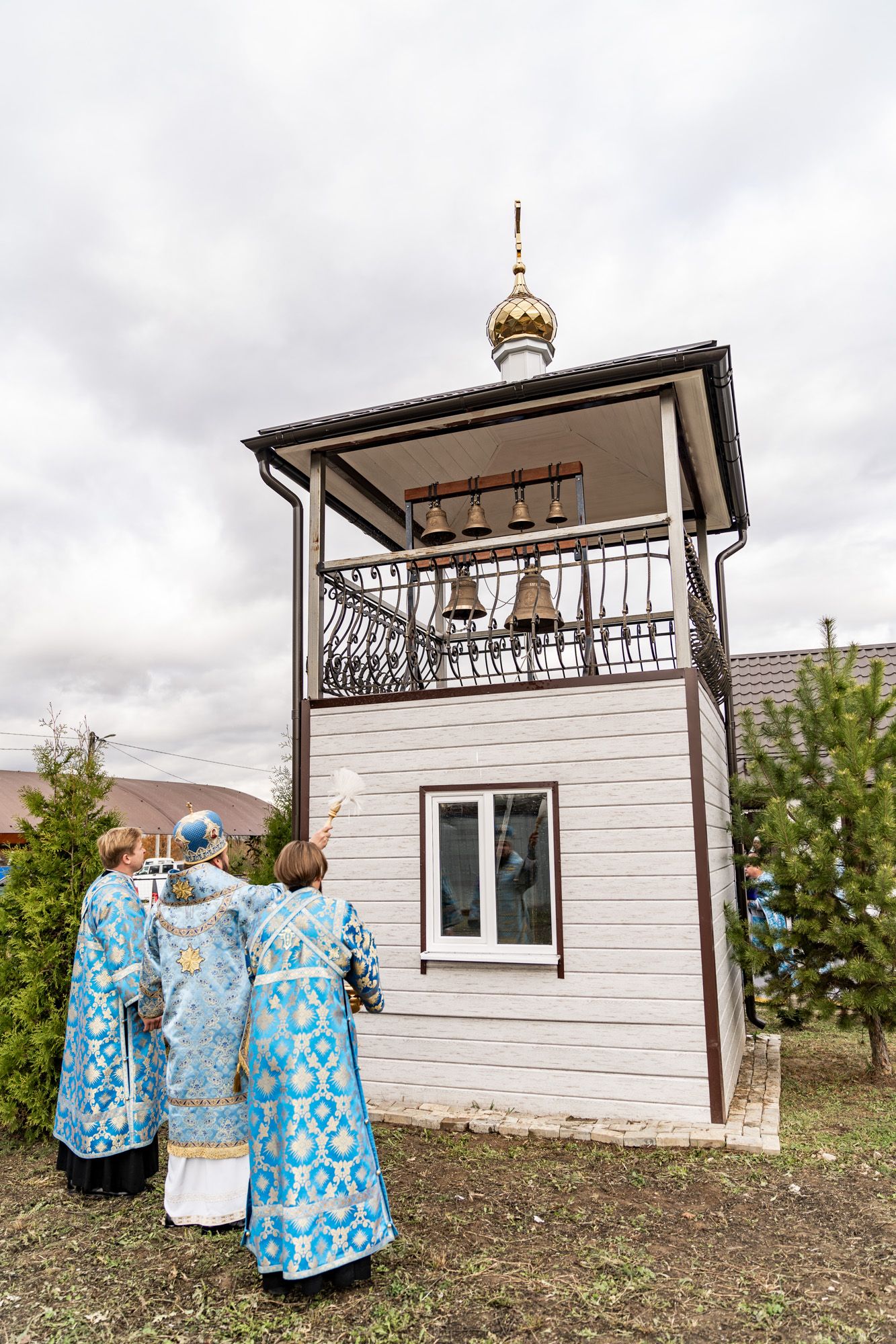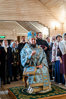 По окончании Божественной литургии владыка совершил освящение колоколов на приходской звоннице и славление перед чтимым храмовым образом Божией Матери «Рудненская».