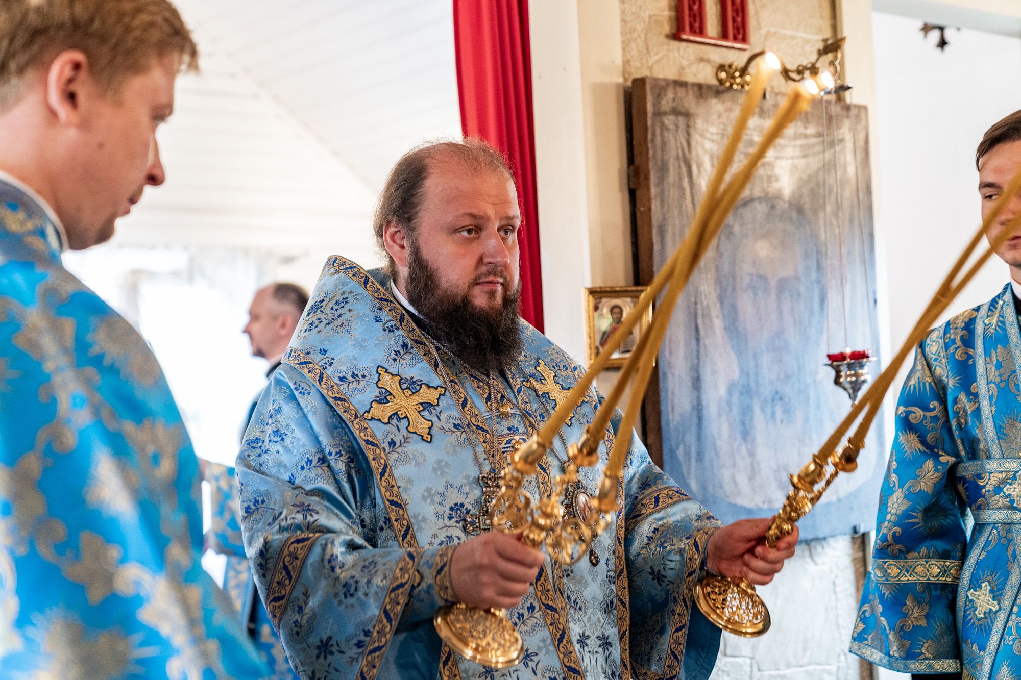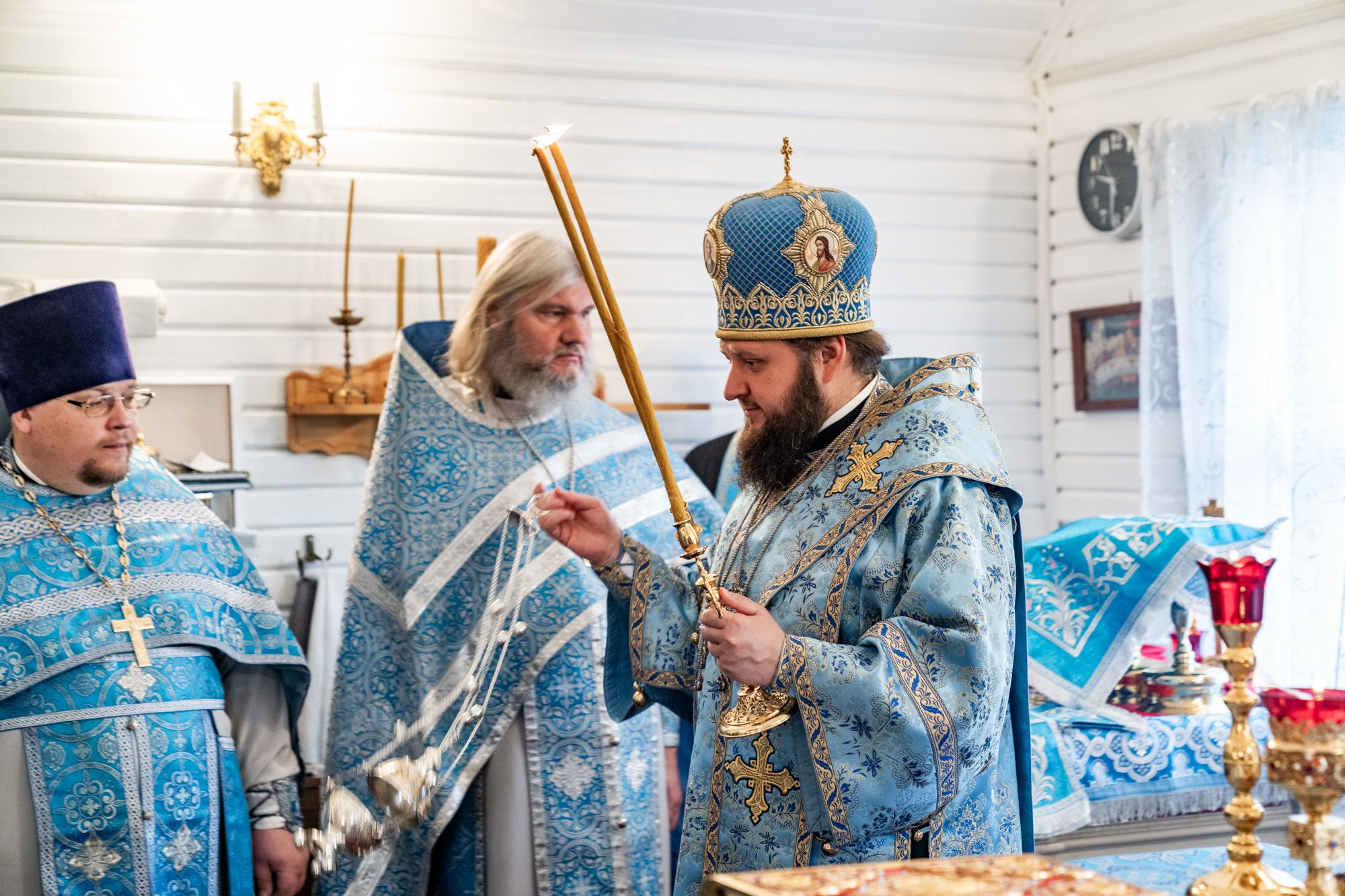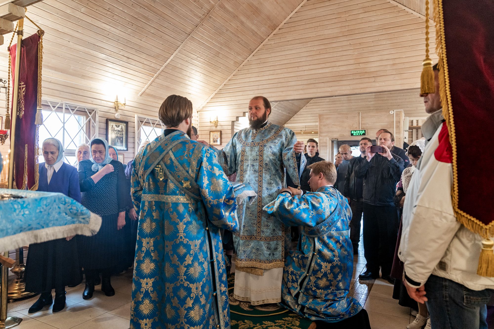 Его Высокопреосвященству сослужили секретарь Подольского епархиального управления иерей Константин Семёнов, благочинный Малинского церковного округа иерей Алексий Плужников, настоятель Спасского храма иерей Максим Кеменев и духовенство Подольской епархии.