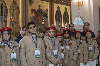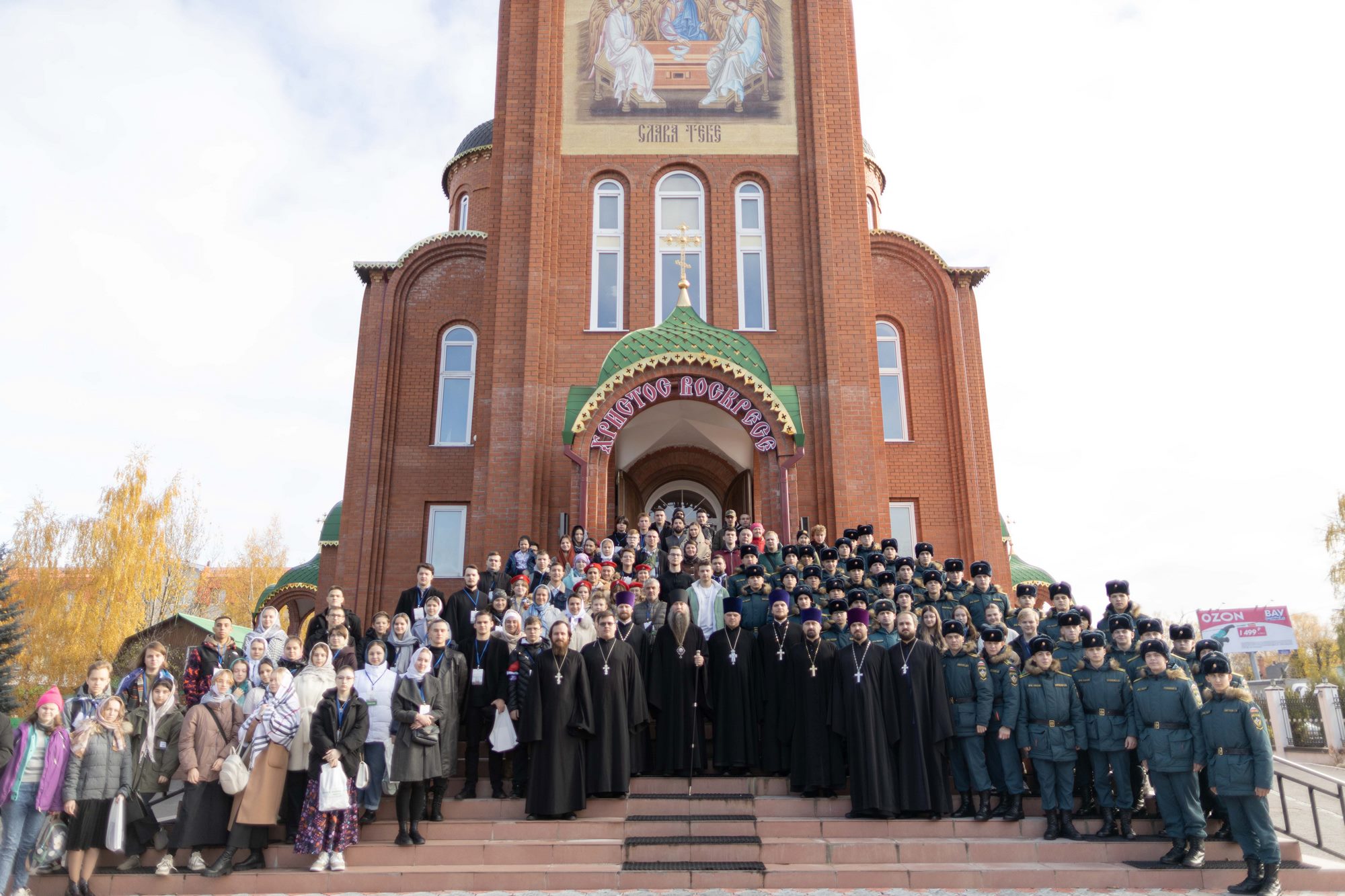 Перед началом форума Управляющий Сергиево-Посадской епархией епископ Сергиево-Посадский и Дмитровский Кирилл совершил в Троицком храме торжественный молебен на начало всякого доброго дела.