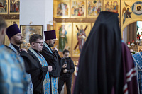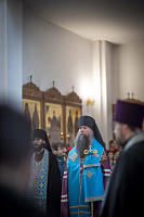 Его Преосвященству сослужили: секретарь Сергиево-Посадского епархиального управления протоиерей Иоанн Монаршек, благочинный Королёвского церковного округа иерей Димитрий Поповский, настоятель Троицкого храма г. Королёва иерей Сергий Монаршек, председатель Межъепархиального отдела по работе с молодежью Московской митрополии иерей Димитрий Нестеров, председатель Отдела по делам молодежи Сергиево-Посадской епархии протоиерей Артемий Литвинов, духовенство Сергиево-Посадской епархии.