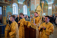 Богослужебные песнопения исполнил соборный хор под управлением Наталии Камышниковой.