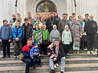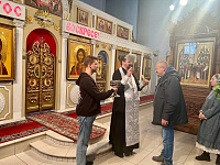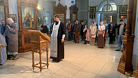 27 октября благочинный Раменско-Жуковского церковного округа иерей Димитрий Денисов совершил молебное пение в храме Преображения Господня Пантелеимоновского прихода г. Жуковского для участников ансамбля народного танца "ЮНОСТЬ" (МУК ДК г. Жуковский).