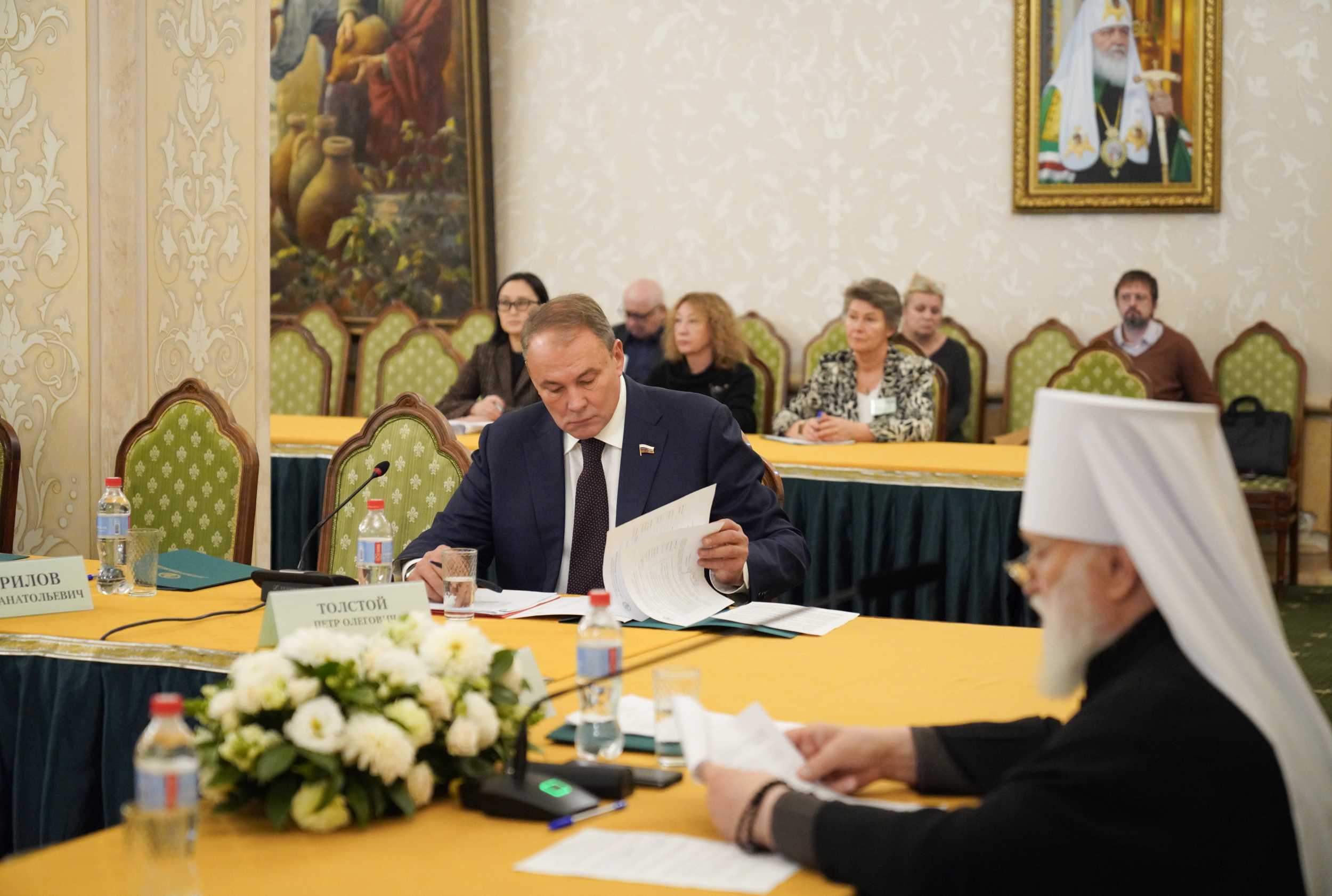 Из числа представителей Русской Православной Церкви в заседании также принял участие председатель Издательского Совета митрополит Калужский и Боровский Климент.