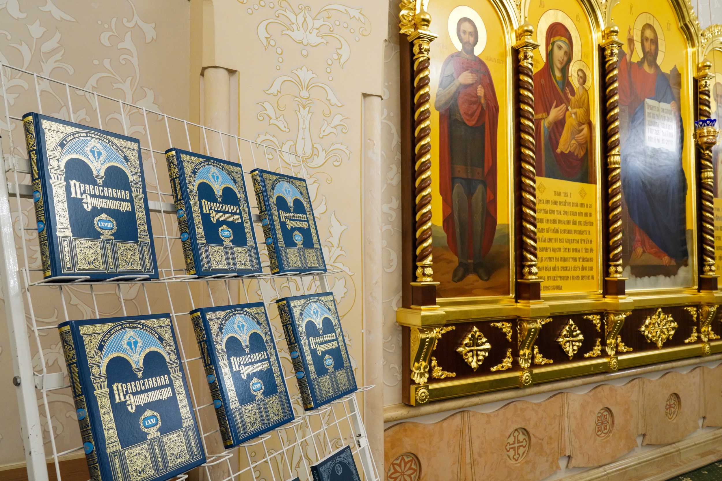 Заседание Советов по изданию «Православной энциклопедии» было организовано в Патриаршем зале Трапезных палат Храма Христа Спасителя. На установленном рядом со столом президиума стенде были представлены 68-73 алфавитные тома «Православной энциклопедии».