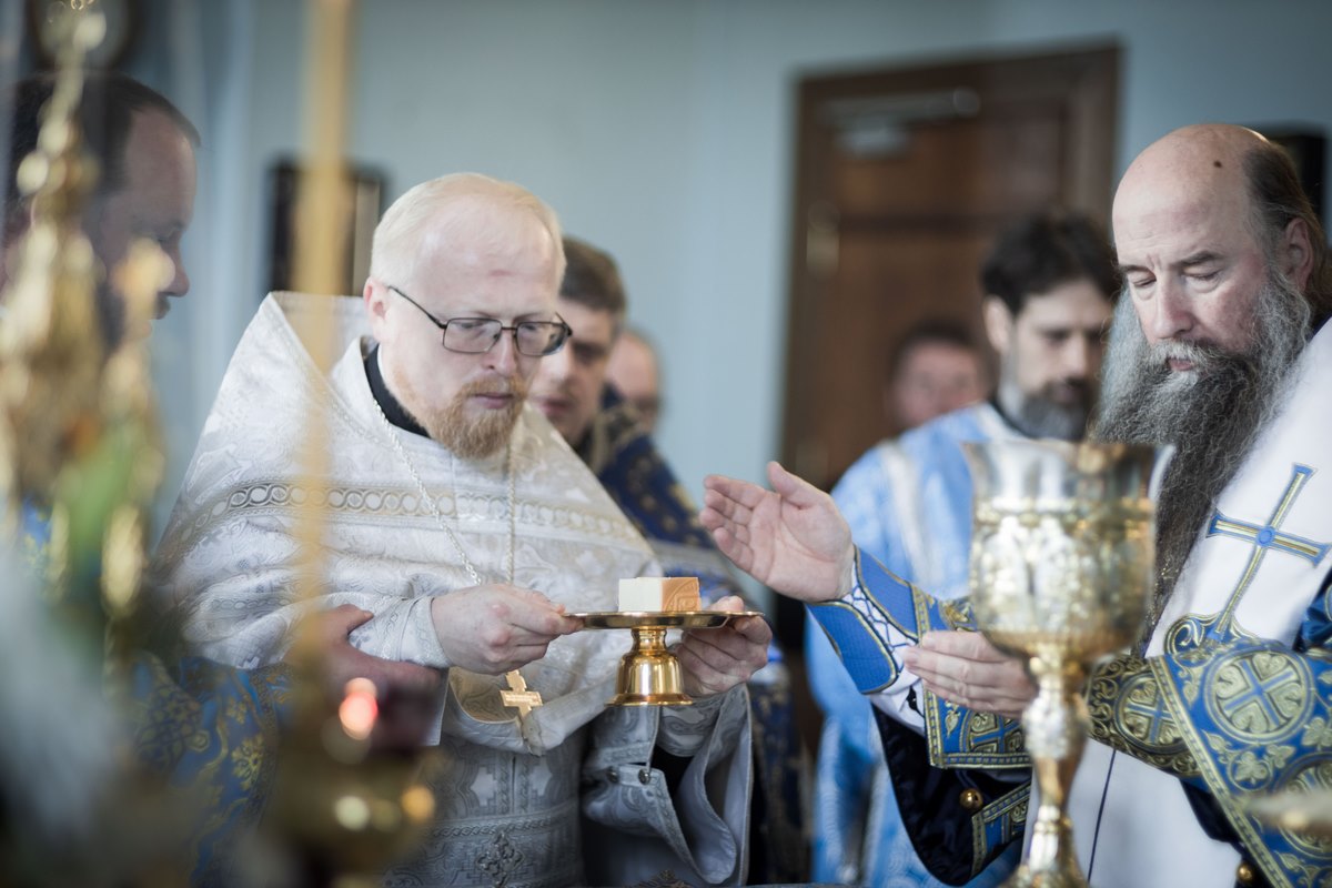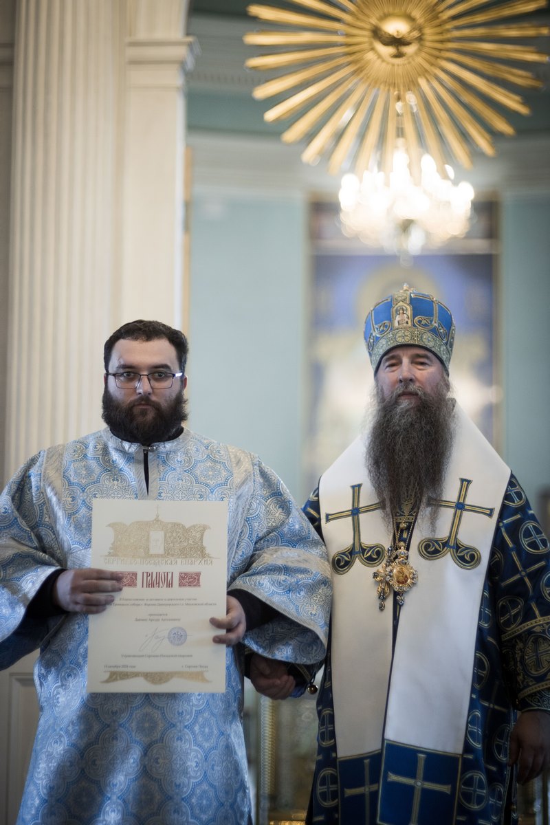 Его Преосвященству сослужили: секретарь Сергиево-Посадской епархии протоиерей Иоанн Монаршек; благочинный Яхромского церковного округа, настоятель Троицкого собора г. Яхромы иерей Сергий Бернацкий; благочинный монастырей Сергиево-Посадской епархии игумен Алексий (Горлычев); благочинный Дмитровского церковного округа протоиерей Афанасий Чорногуз; настоятель Борисоглебского мужского монастыря г. Дмитрова игумен Августин (Шорников); благочинные церковных округов: Солнечногорского – протоиерей Антоний Тирков, Королёвского – иерей Димитрий Поповский, Рогачевского – иерей Сергий Сафронов; заместитель благочинного Яхромского церковного округа протоиерей Димитрий Колупаев; председатель Епархиального отдела по издательской деятельности и взаимодействию со СМИ иерей Димитрий Полещук; клирики Яхромского благочиния и приглашенное духовенство. Диаконский чин возглавил клирик Богоявленского кафедрального собора г. Москвы протодиакон Николай Платонов.