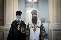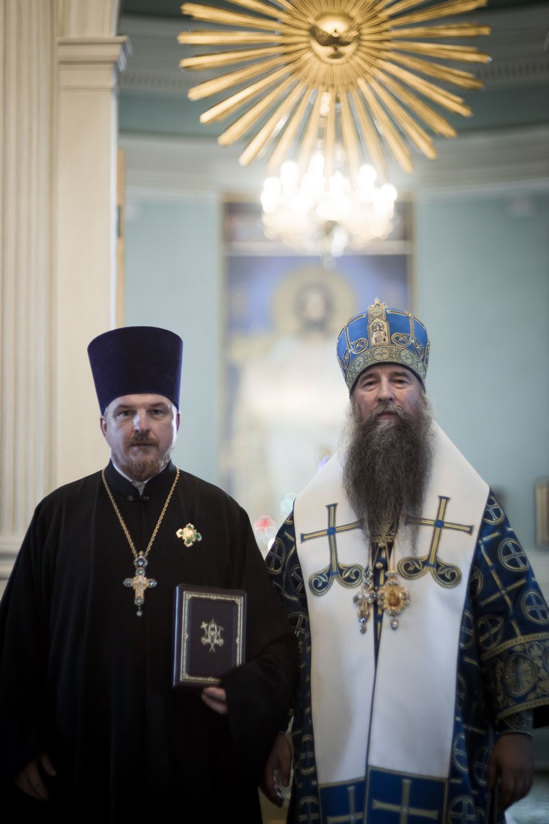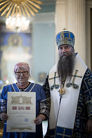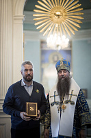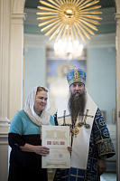 Затем епископ Кирилл обратился к молящимся со словами напутствия и вручил Патриаршие и епархиальные награды.