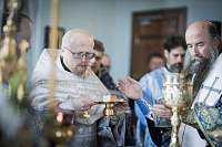 За Литургией Владыка совершил пресвитерскую хиротонию клирика Троицкого собора г. Королёва диакона Александра Опалева.