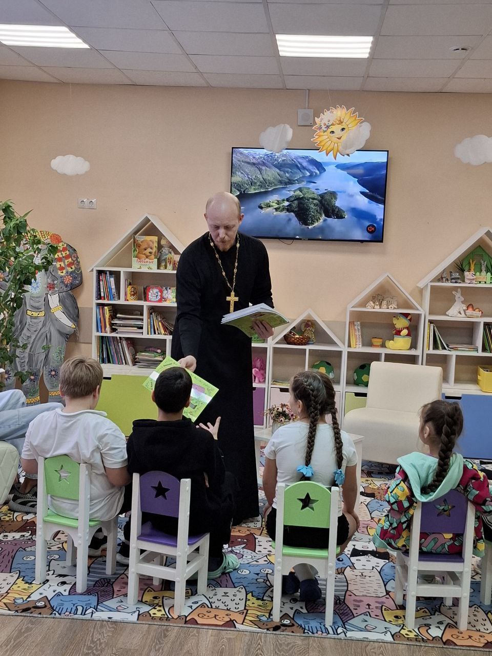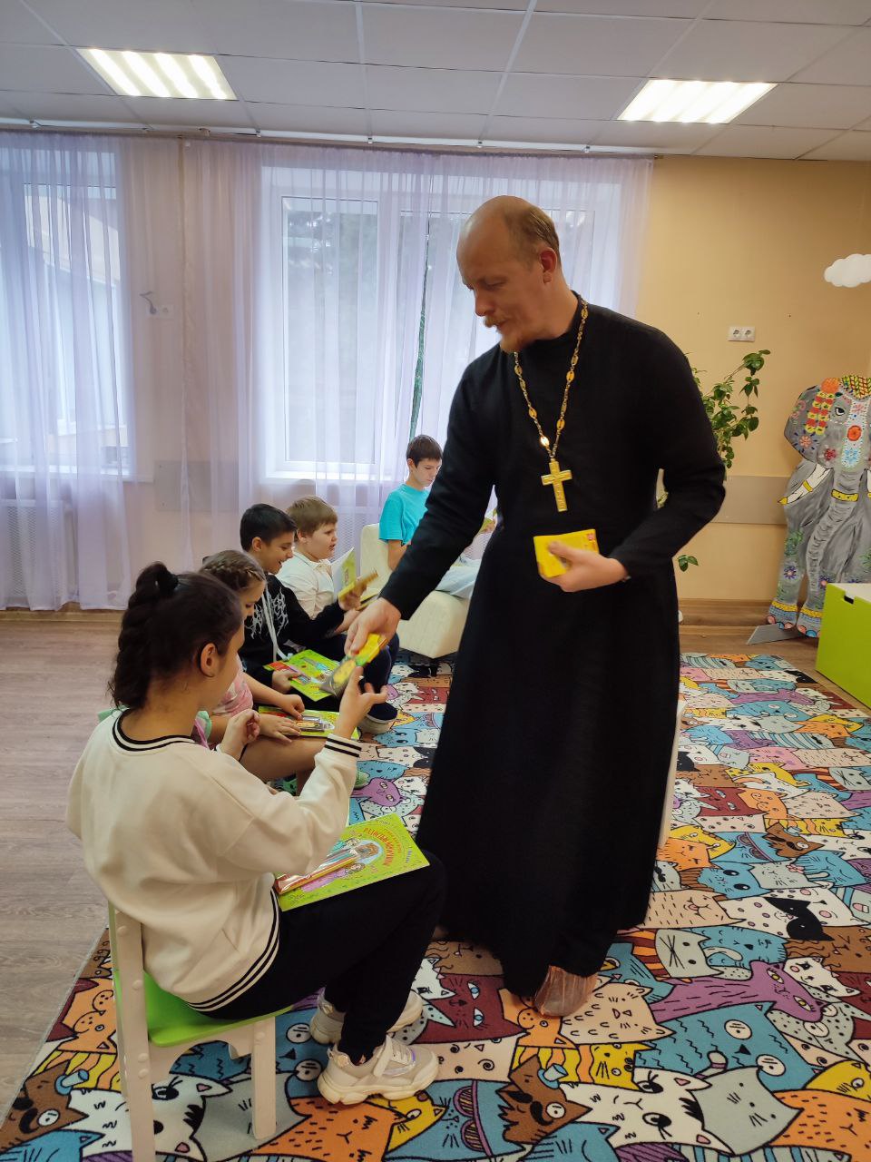 29 октября в отделении реабилитации несовершеннолетних с ОВЗ ГБУСО МО "КЦСОР "Воскресенский" прошла ежегодная благотворительная акция "Согреем детские сердца". Ответственный по вопросам семьи, защиты материнства и детства во 2-м Воскресенском благочинническом округе настоятель Серафимовского храма с. Федино иерей Сергий Пчелинцев встретился с детьми и побеседовал о важности единства и сплочения в благих целях, о доброте и дружбе. В заключении беседы отец Сергий вручил ребятам памятные подарки.