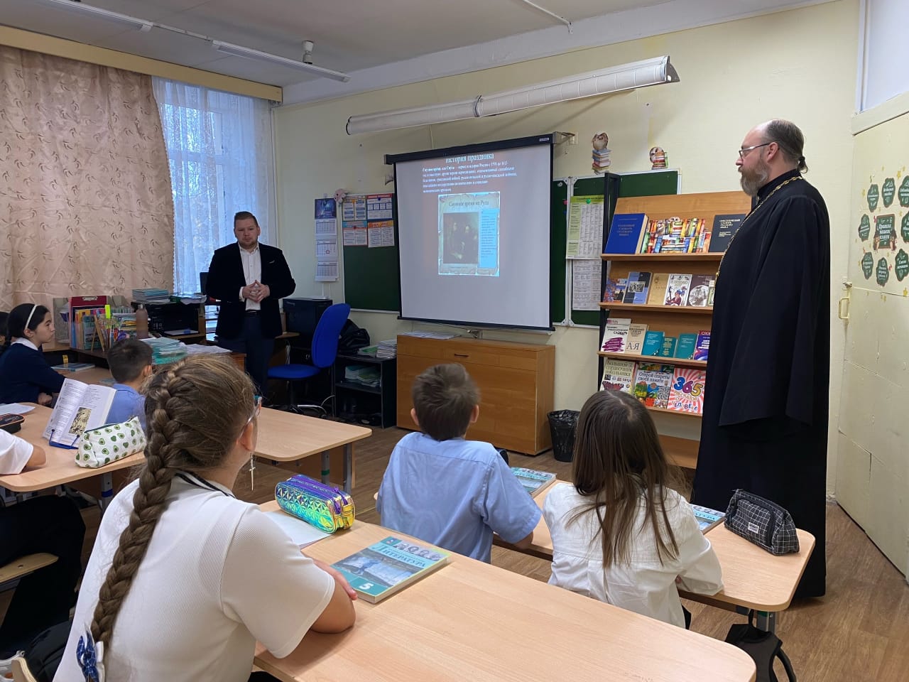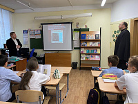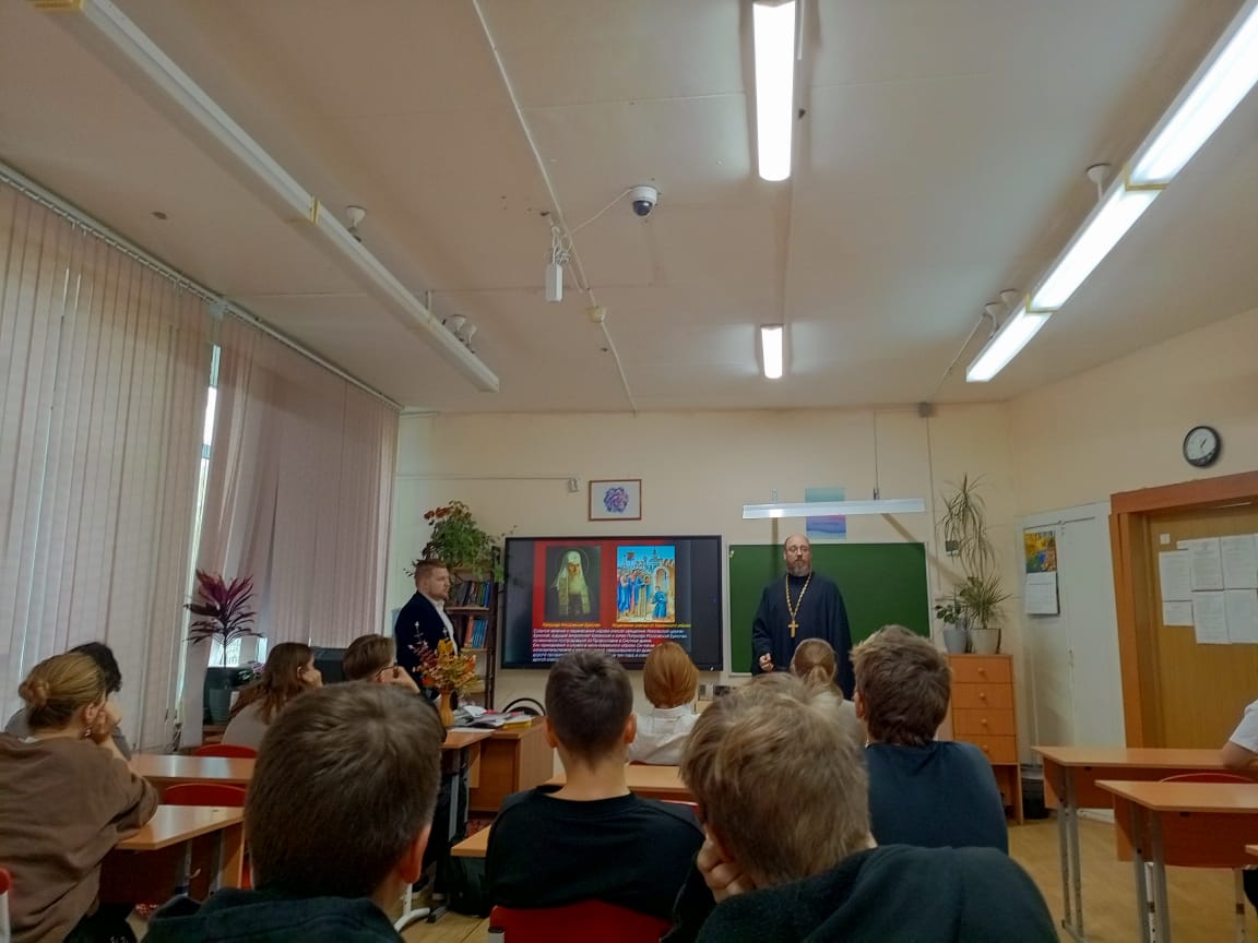29 октября 2024 года настоятель храма великомученика и целителя Пантелеимона г. Дубны иерей Леонид Салтыков вместе со своим помощником Мельковым Виталием провел уроки в школе №9 с углублённым изучением иностранных языков.