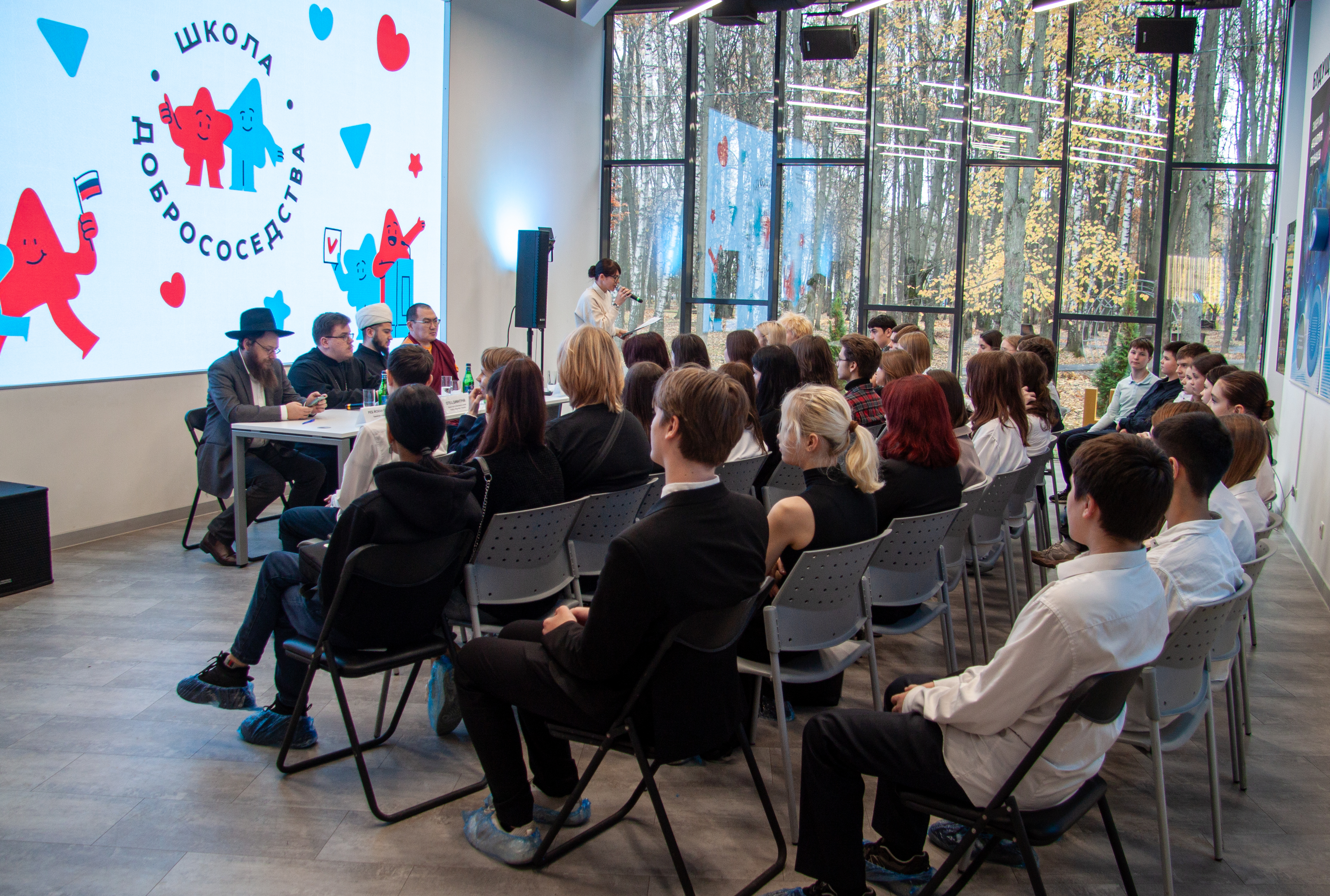 В рамках встречи на вопросы учащихся образовательных учреждений г. Королëв вместе с православным священником отвечали представители ещё 3-х традиционных религиозных конфессий: ислама, иудаизма и буддизма.