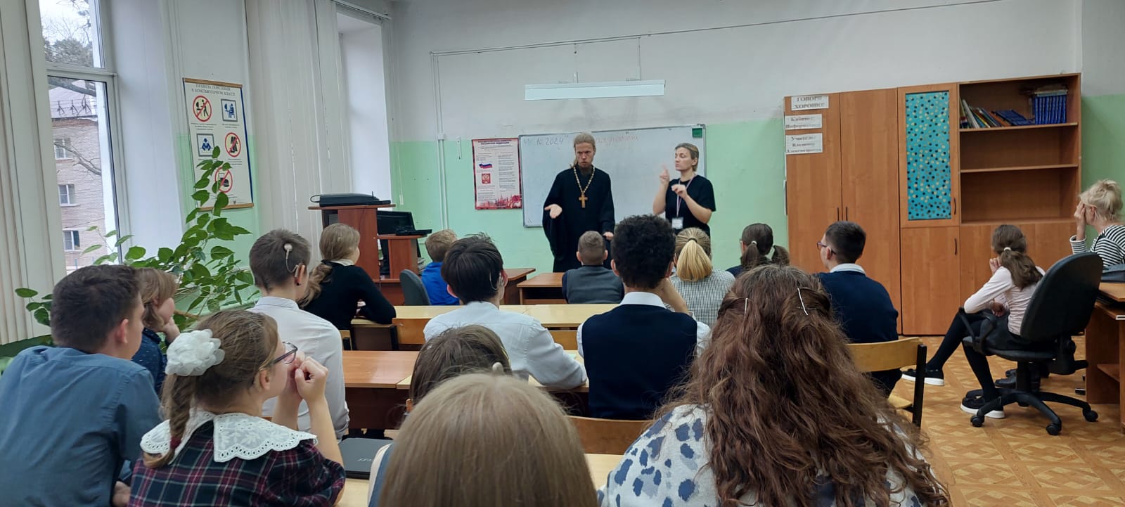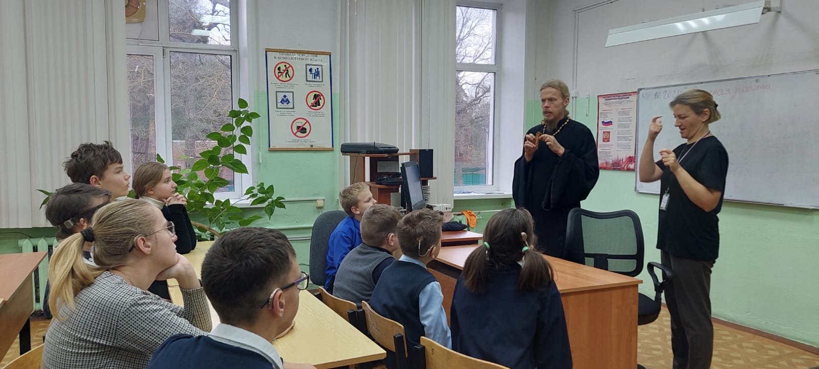31 октября ответственный за религиозное образование и катехизацию в 1-м, 2-м и 3-м Коломенских благочиннических округах клирик Михаило-Архангельского храма г. Коломны священник Димитрий Шаповалов в рамках акции "Задай вопрос священнику" встретился с учащимися МБОУ "Школа №19 для детей с ОВЗ". На встрече обсуждался широкий спектр вопрос учеников и педагогов: смысл и цель жизни, молитва, Таинства Церкви и многие другие.