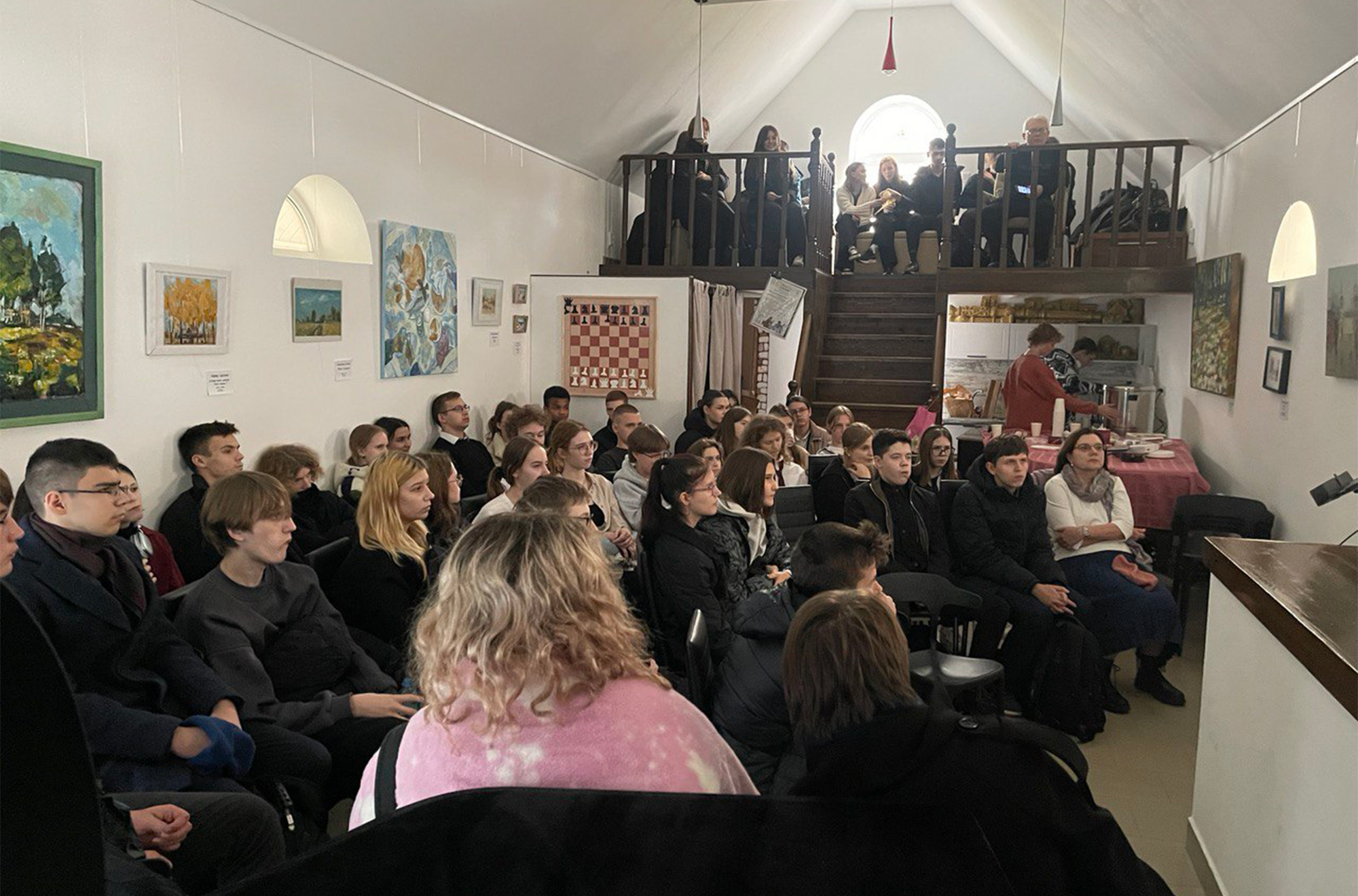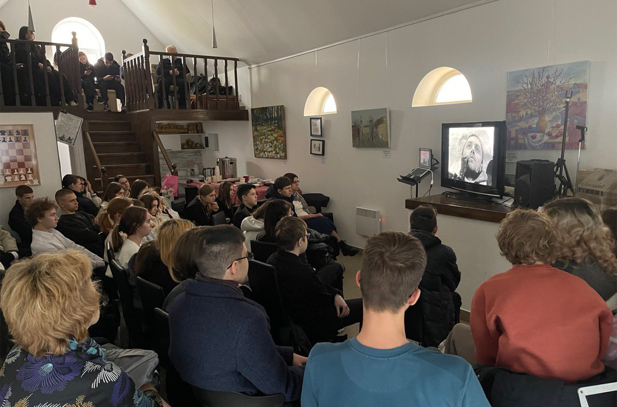3 ноября в зале Приходской филармонии Елизаветинского храма г.Королёва в рамках Международных Рождественских образовательных чтений состоялась встреча со старшеклассниками подшефных приходу МБОУ СОШ №7 и МБОУ СОШ №13. Встреча-беседа "Война и мир" была организованна в рамках Международных Рождественских образовательных чтений, посвященных в этом году 80-летию Победы в Великой Отечественной войне. Смотрели и обсуждали кинодраму «Восхождение» Ларисы Шепитько - советскую картину 1973 года и бесспорный шедевр мирового кино, снятого по повести Василя Быкова «Сотников» (повесть входит в школьную программу как внеклассное чтение). Договорились о дальнейших встречах в подобном формате.