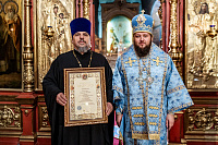 Затем владыка вручил Архиерейскую грамоту клирику Христорождественского храма протоиерею Стефану Котруце.