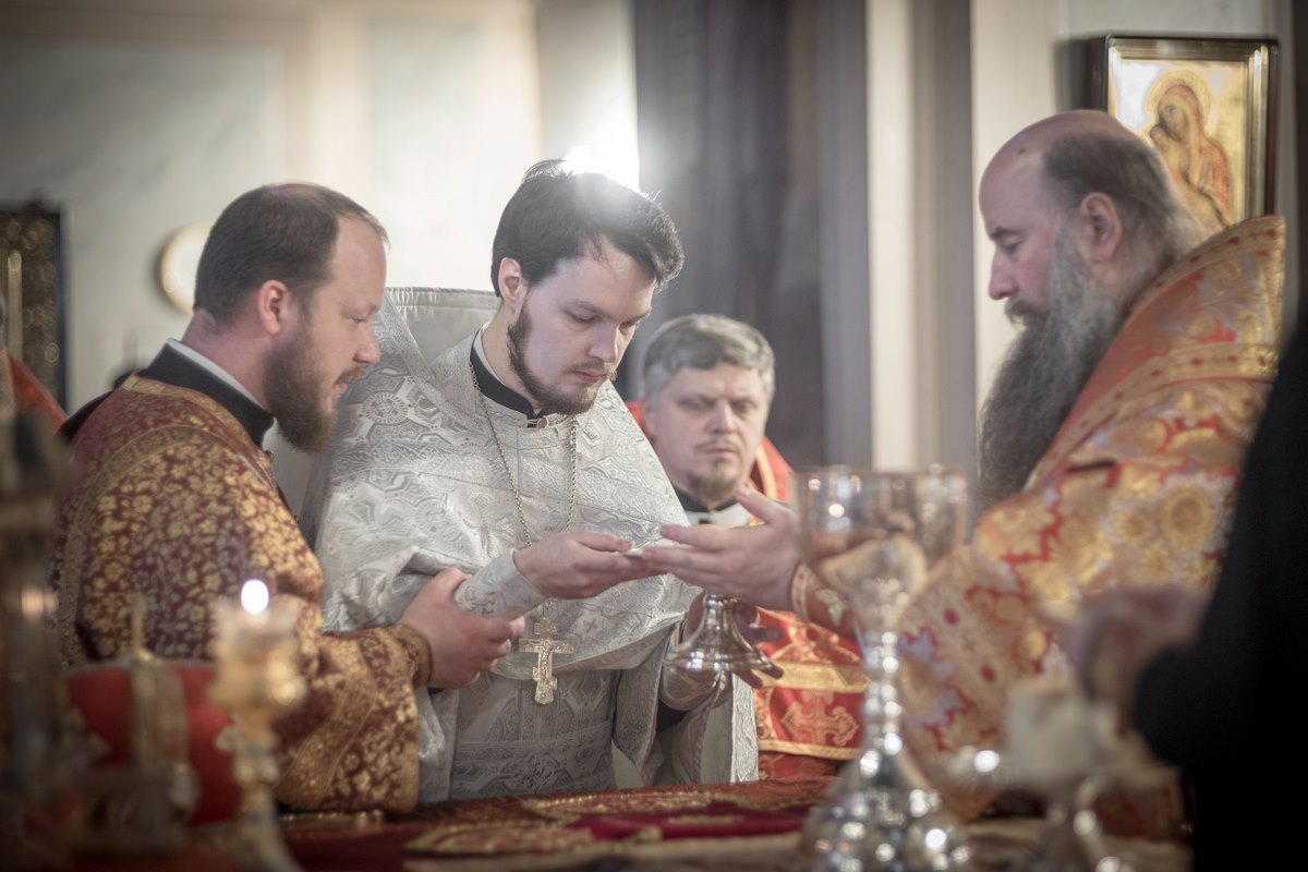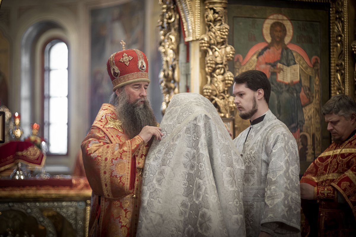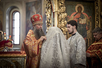 За Литургией Владыка совершил пресвитерскую хиротонию клирика Троицкого храма г. Пушкино диакона Василия Веретенникова.