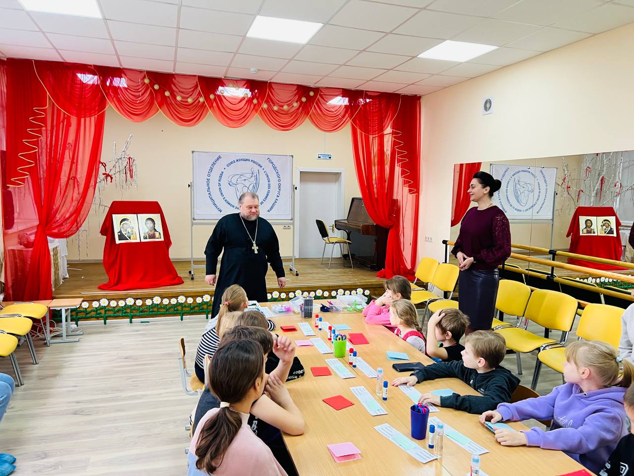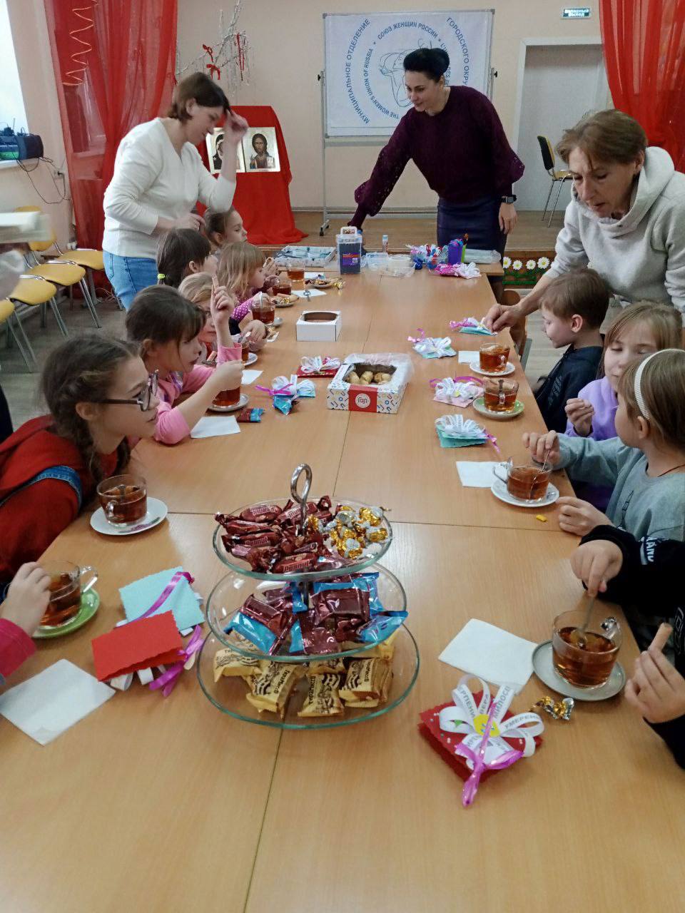 9 ноября муниципальное отделение «Союз женщин России» совместно с Каширским благочинием в Духовно-просветительском центре им. св. равноап. вел. кн. Владимира при Введенском храме города Кашира вместе с семьями с детьми из Отделения реабилитации для детей-инвалидов и детей с ОВЗ N2 Комплексного центра социального обслуживания и реабилитации "Ступинский", многодетными и приёмными семьями, организовали «Дружеский мастер-класс» по изготовлению открыток. Мероприятие прошло в рамках цикла встреч, посвященных празднику Дня народного единства.
