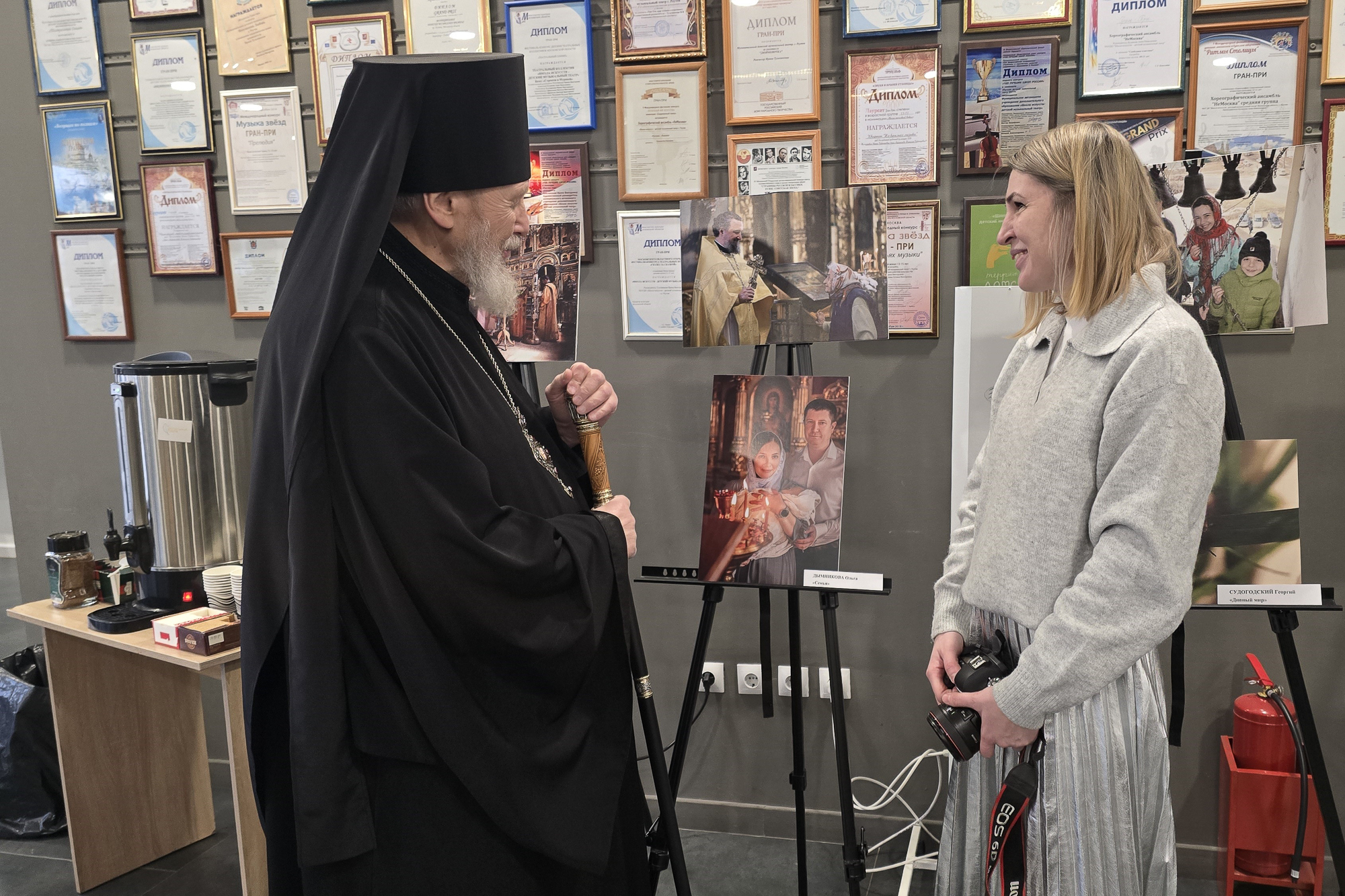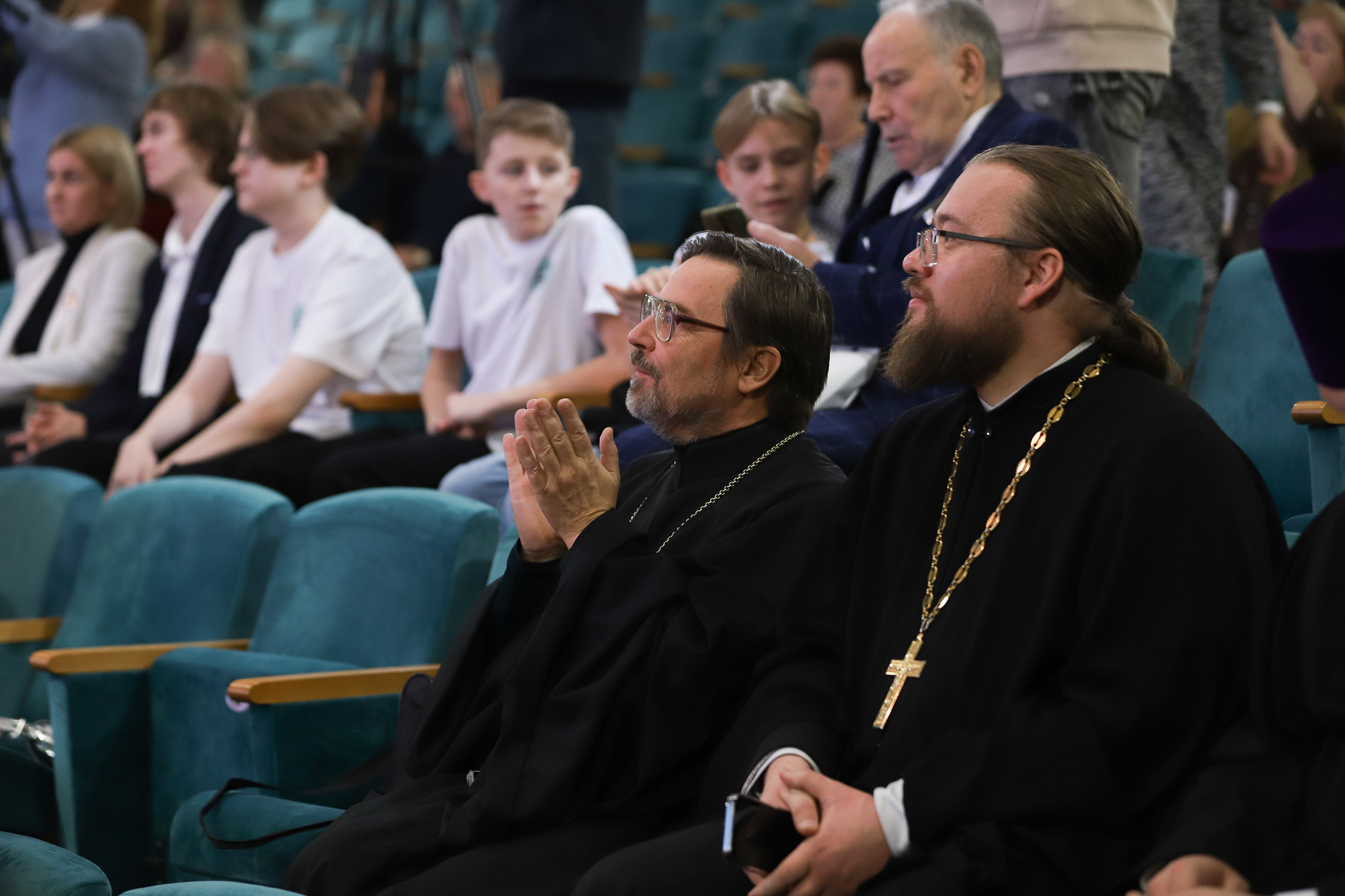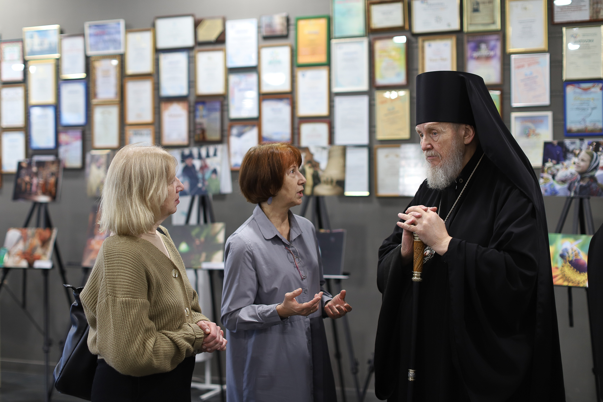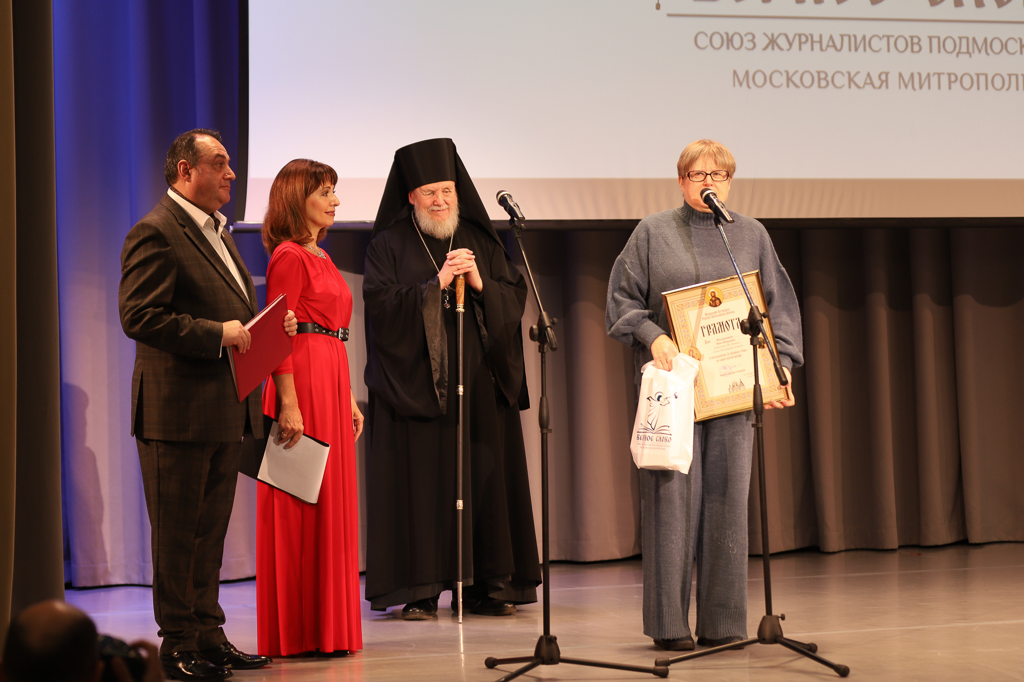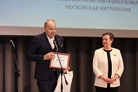 Затем в городском центре культуры и искусств Владыка Николай открыл церемонию награждения и преподал грамоты митрополита Крутицкого и Коломенского Павла «За усердные труды во славу Божию в Московской митрополии Русской Православной Церкви» благочинному Видновского церковного округа, члену жюри конкурса «Верное слово» иеромонаху Софронию (Горохольскому) и режиссёру телеканала «Поиск», руководителю медиа-студии «Новый день» при Православной классической гимназии «София» Инге Филипповой (г. Клин).