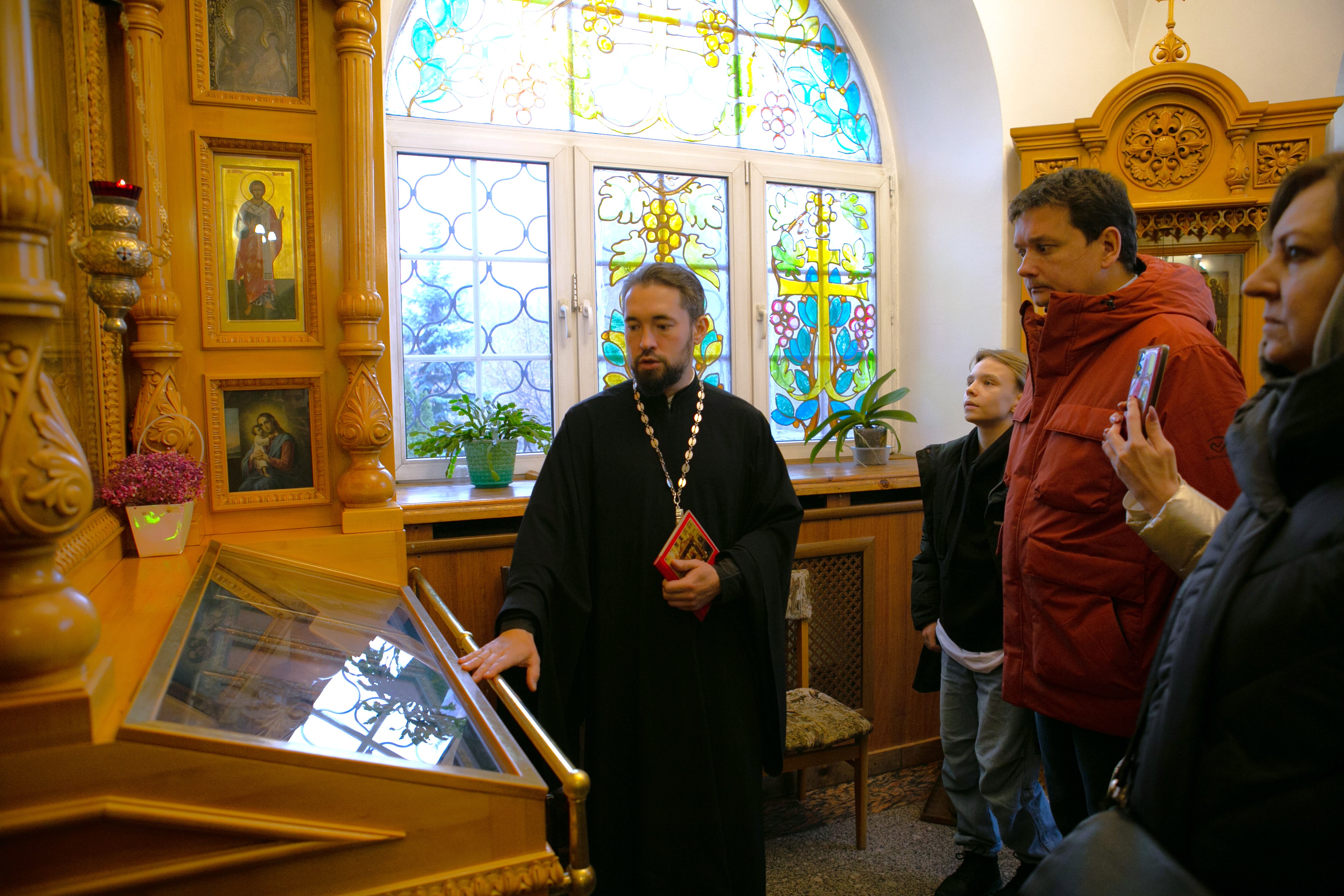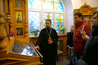 Для гостей была проведена экскурсия по Казанскому храму, в ходе которой они познакомились с уникальными фактами и артефактами из истории богоборческого периода.