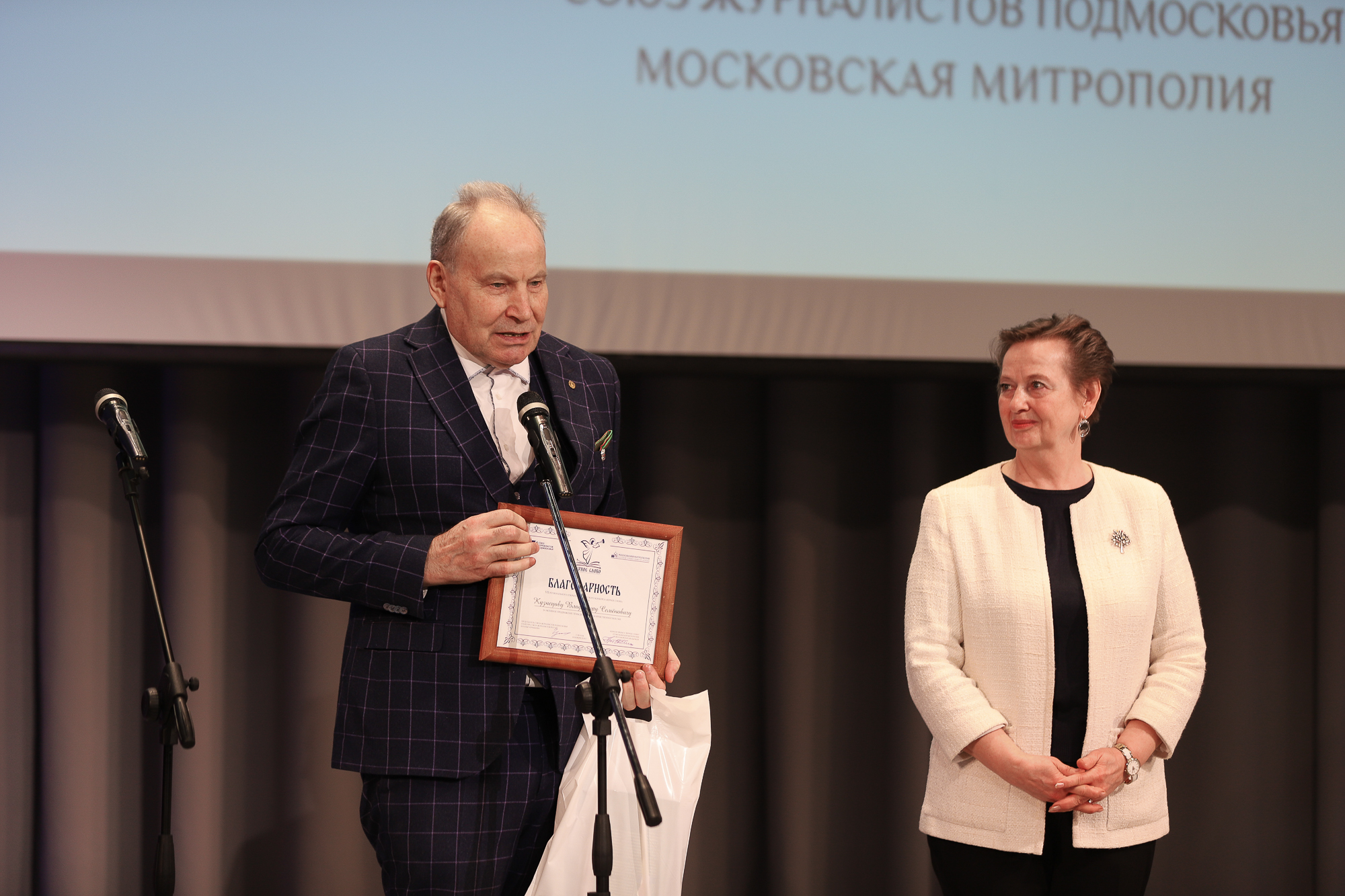 От лица организаторов собравшихся приветствовали: секретарь Союза журналистов России, председатель Союза журналистов Подмосковья Наталья Александровна Чернышова, руководитель пресс-службы Московской митрополии, председатель Епархиального информационного отдела, благочинный Лосино-Петровского церковного округа священник Павел Галушко, куратор конкурса от Московской митрополии протоиерей Игорь Бычков.