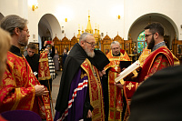 В Казанском храме г. Реутов у мощей новомучеников Александра Смирнова и Феодора Ремизова, память которых Церковь чтит в этот день, епископ Балашихинский и Орехово-Зуевский Николай совершил молебен в сослужении председателя священника Павла Галушко и членов Епархиального информационного отдела.