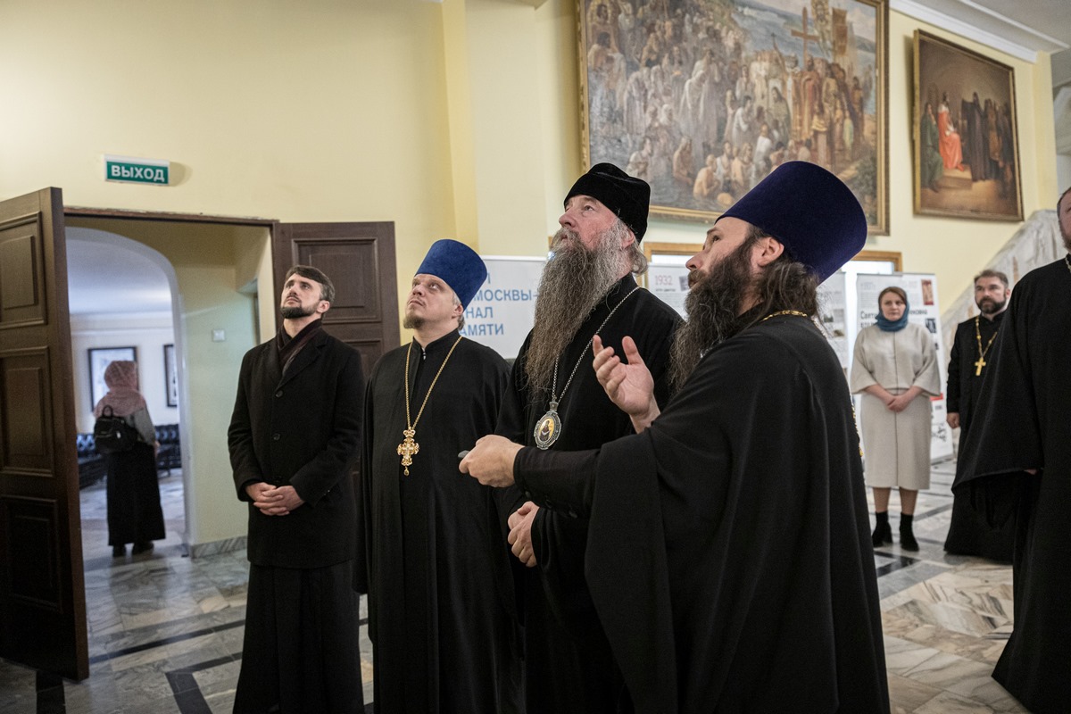 В холле актового зала силами Епархиальных Отдела культуры и Комиссии по канонизации святых были подготовлены выставка тематических картин и рисунков, а также баннерная композиция, посвященная новомученикам Сергиево-Посадской епархии.