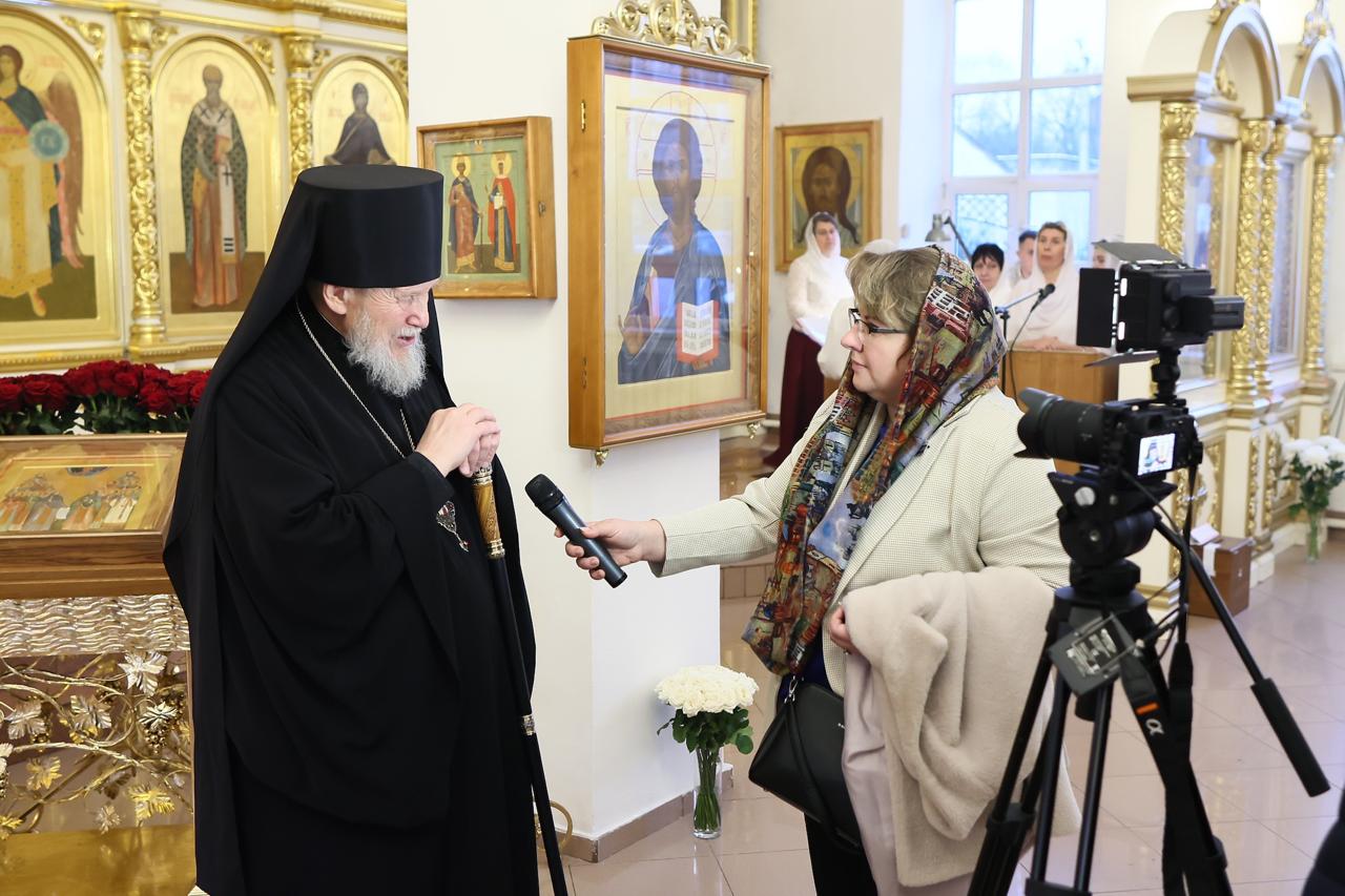 По окончании богослужения перед иконой новомучеников Павлово-Посадских было совершено славление и возглашены уставные многолетия, после чего отец благочинный и С. Ю. Аргунова обратились к епископу Николаю с приветственными словами.