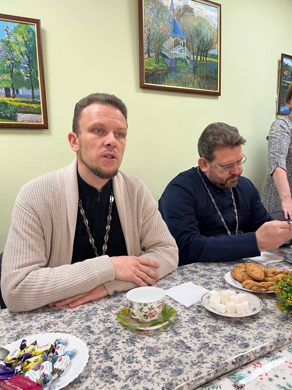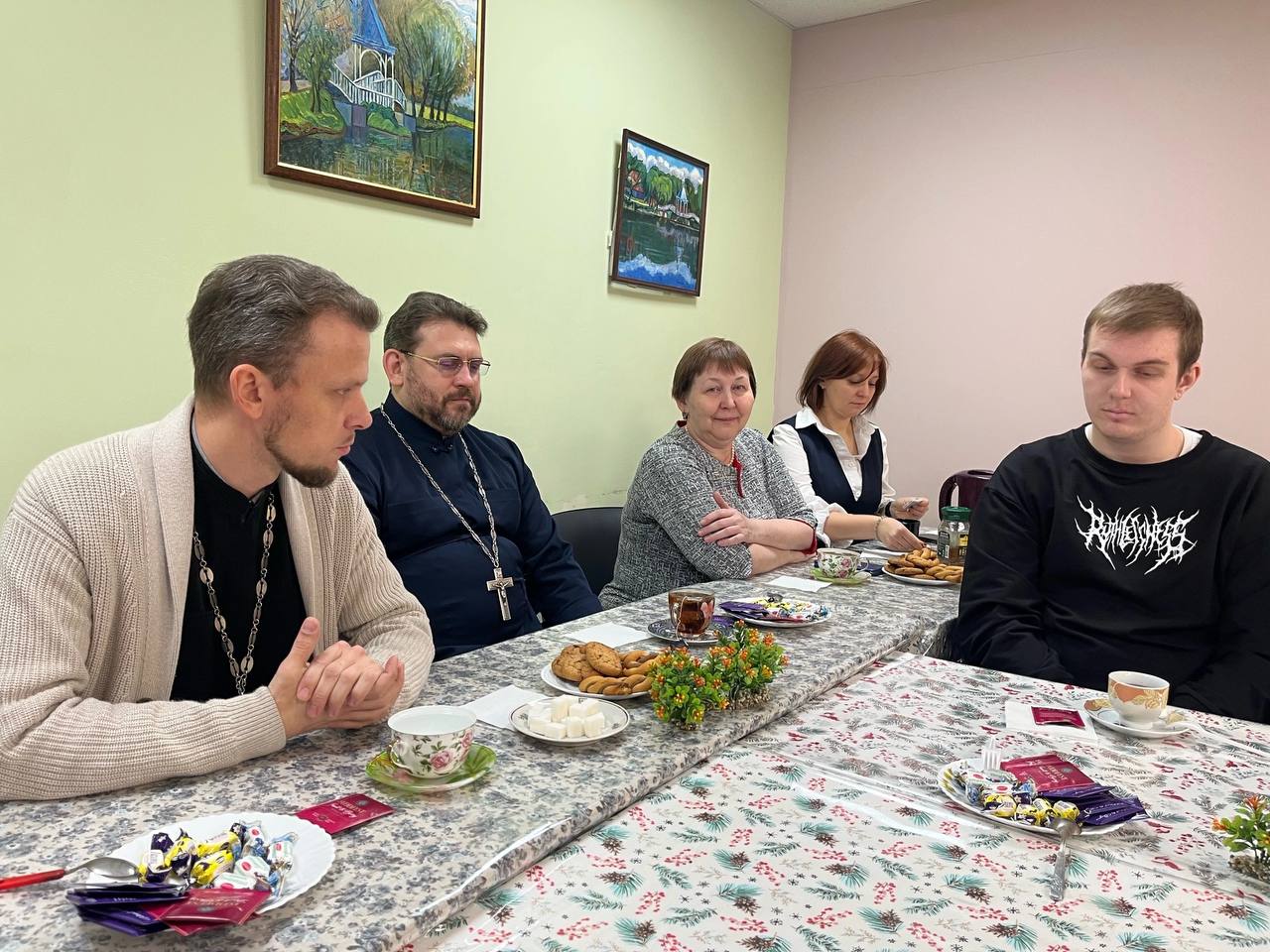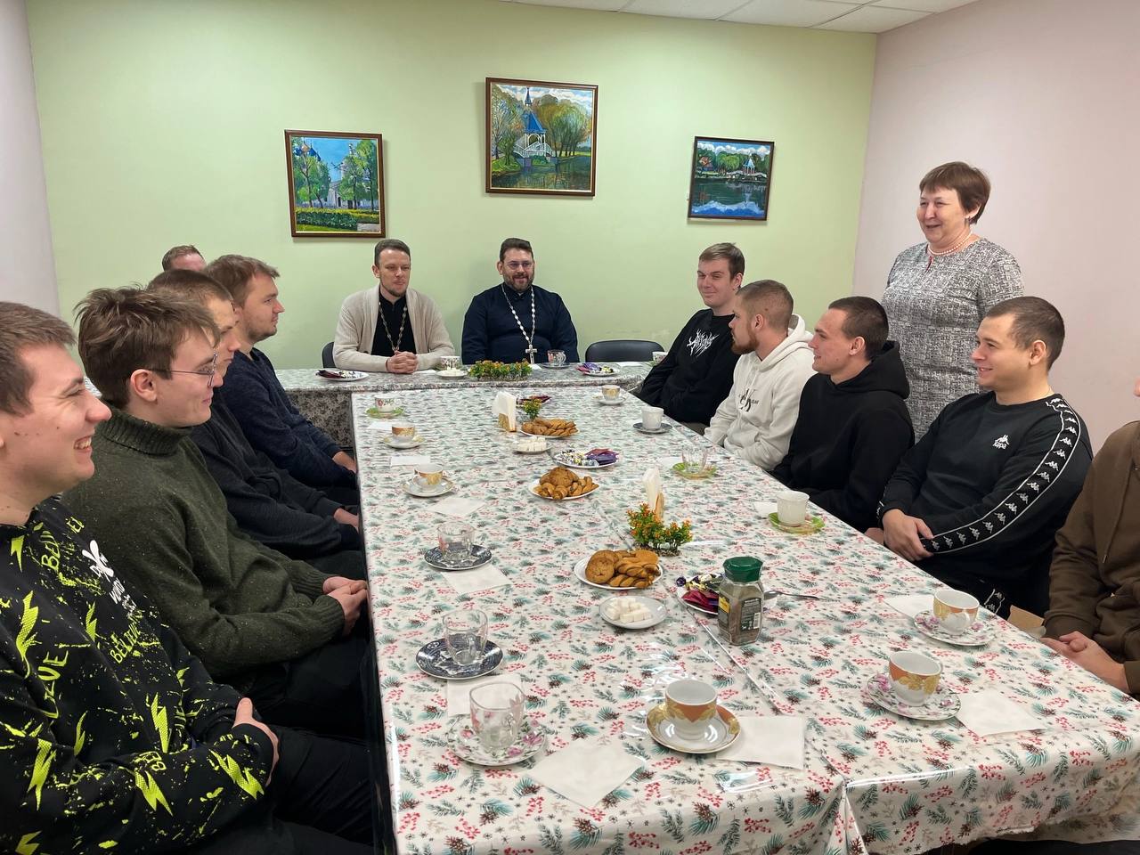 За чашкой чая прошел «Диалог на равных». Так назвали встречу, в ходе которой студенты института задавали священникам вопросы. Поднимались серьезные темы для обсуждения: жизнь и свобода человека и христианина, религия и духовность, миссия Церкви, Её жизнь и развитие, роль священства и прихожан в этих процессах.