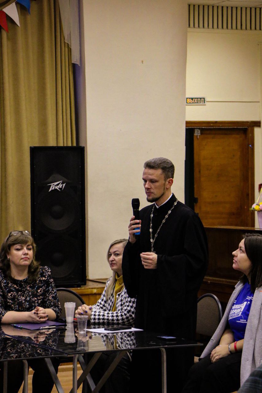 Перед собравшимися также выступил помощник благочинного по социальному служению, настоятель Смоленского храма с. Кривцы иерей Александр Мучнов, который рассказал историю своей семьи: о работе своего деда в довоенные годы и о призыве на военную службу в годы Великой Отечественной войны.