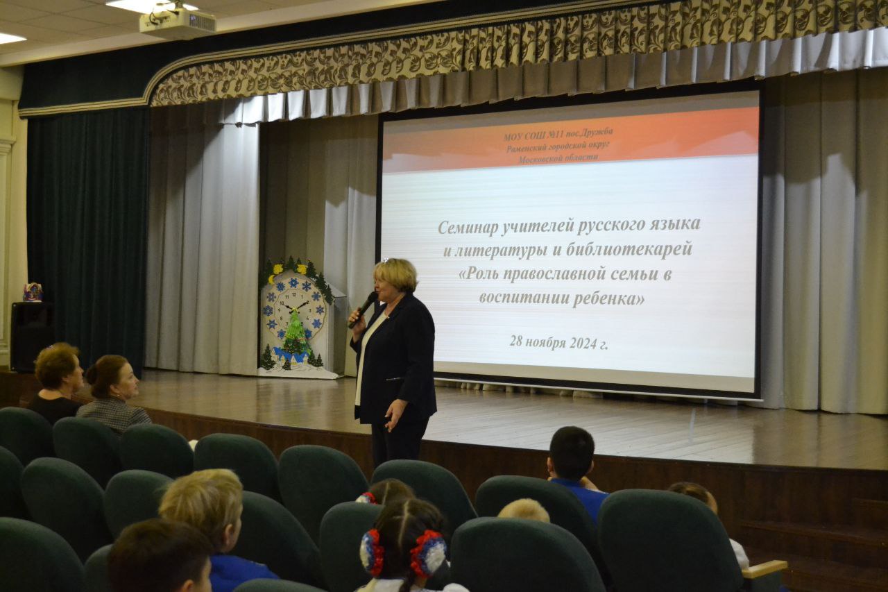 28 ноября в Средней общеобразовательной школе № 11 пос. Дружба Раменского г.о. в рамках областных Рождественских образовательных чтений состоялся семинар учителей русского языка и литературы и библиотекарей "Роль православной семьи в воспитании ребенка".