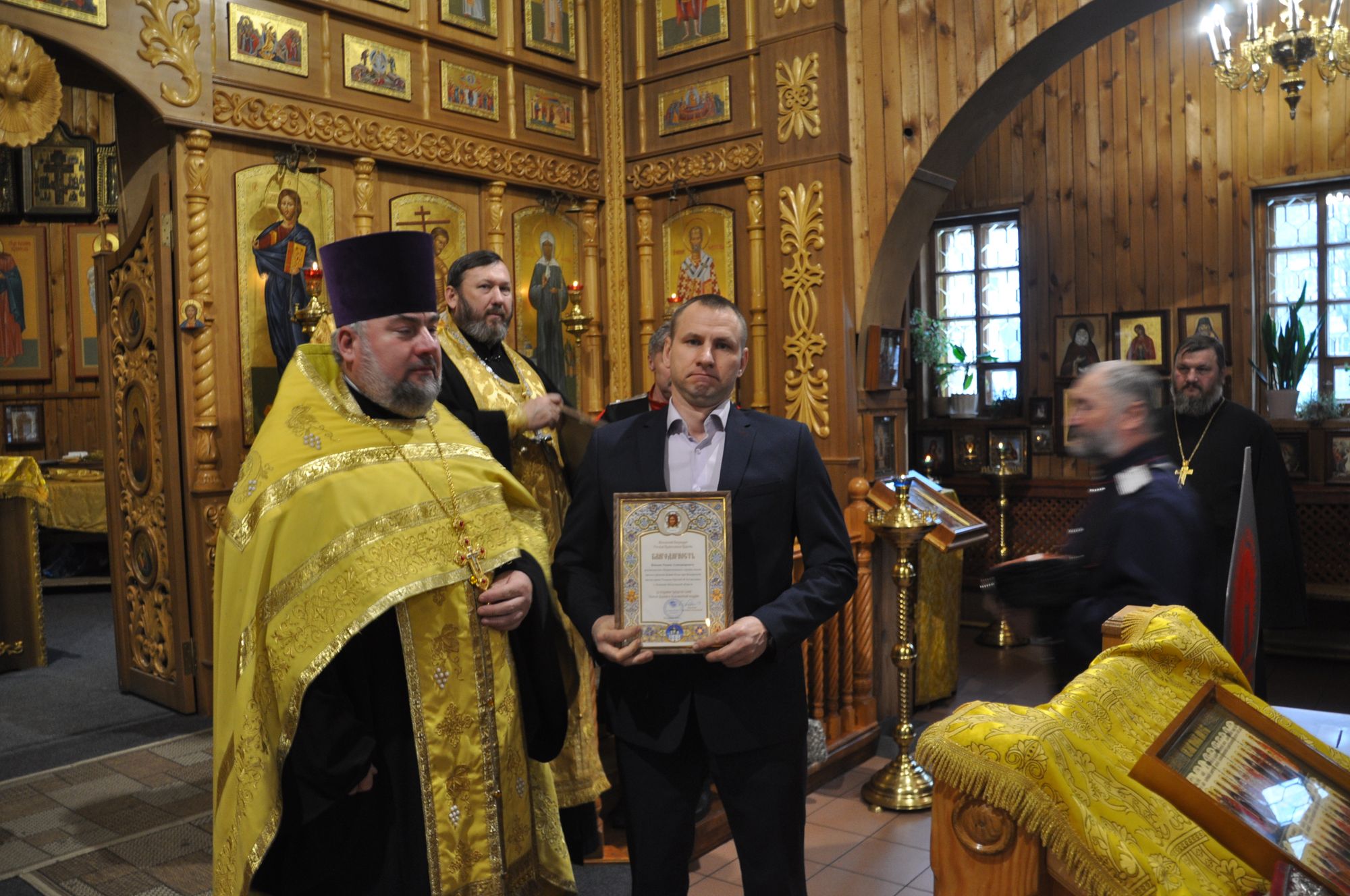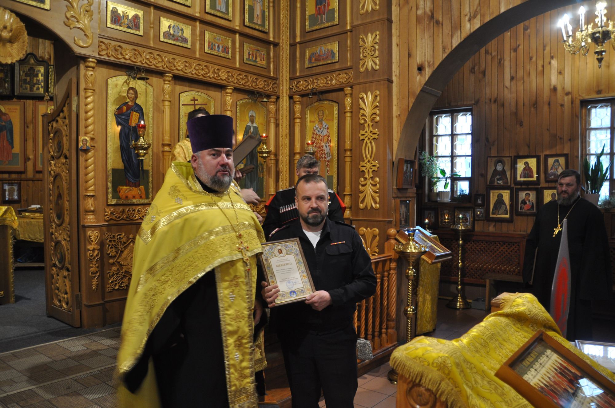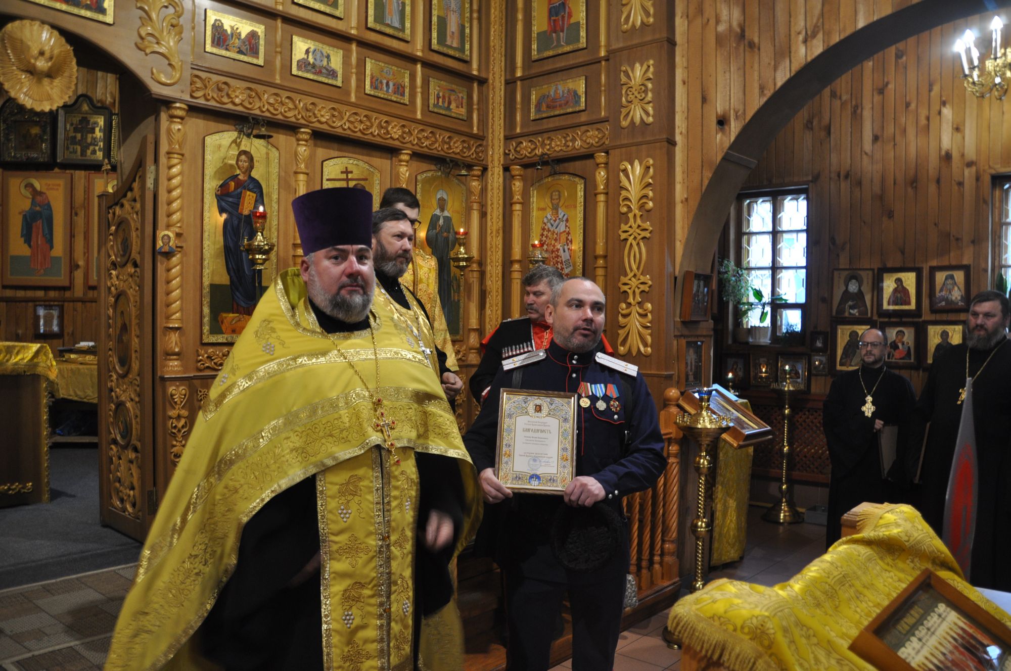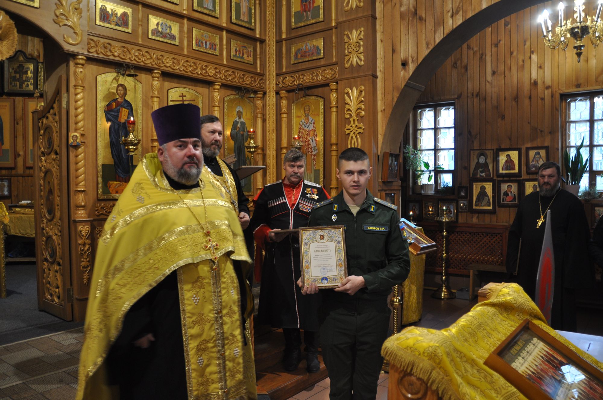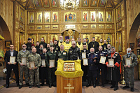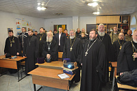 Перед началом собрания состоялся благодарственный молебен, который совершил председатель Отдела по взаимодействию с Вооруженными силами, правоохранительными органами и казачеством Коломенской епархии, благочинный 2-го Воскресенского округа протоиерей Сергий Рыбаков в сослужении сотрудников Отдела. За молебным пением молились представители Вооружённых сил, правоохранительных органов и казачества. По окончании молебна отец Сергий вручил благодарственные грамоты митрополита Крутицкого и Коломенского Павла представителям силовых структур, активно взаимодействующим с Коломенской епархией. Также медалью от 39-й отдельной мотострелковой бригады был награждён настоятель Христорождественского храма пос. Родники иерей Олег Занин.