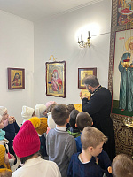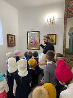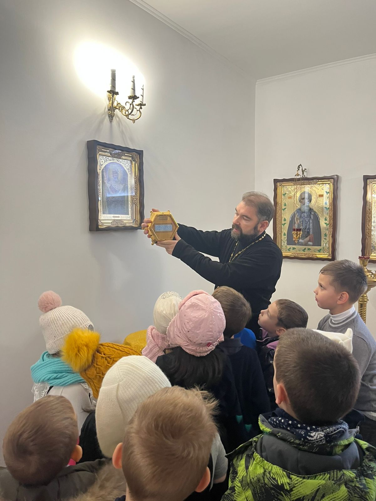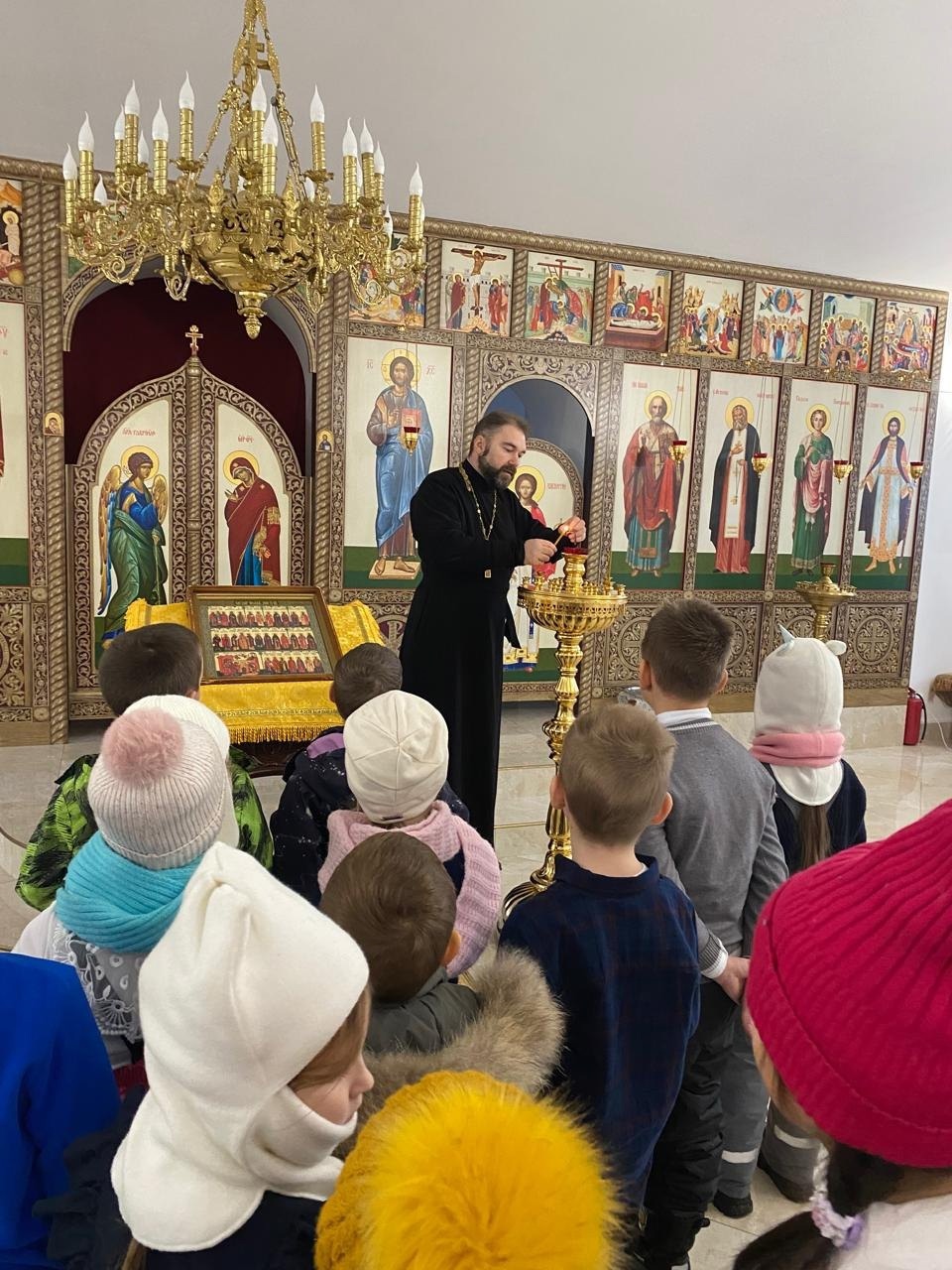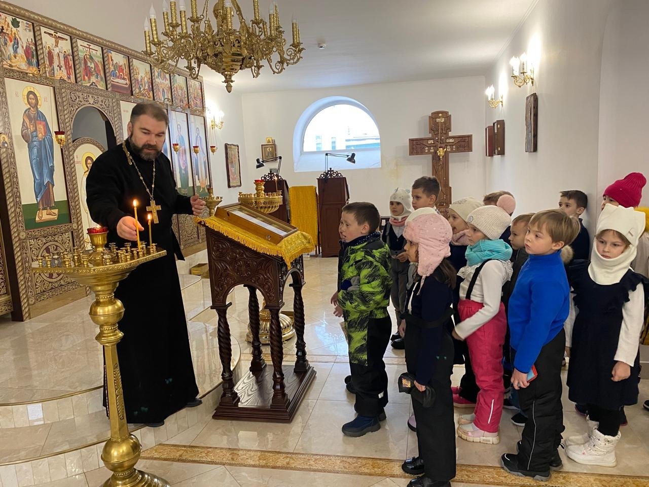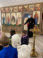Отец Сергий познакомил детей с храмом, рассказал им об азах православной веры и о значении молитвы в жизни христианина. Ребята узнали, как правильно ставить свечи, затем сами поставили их перед иконами, обращаясь к Богу с молитвами.