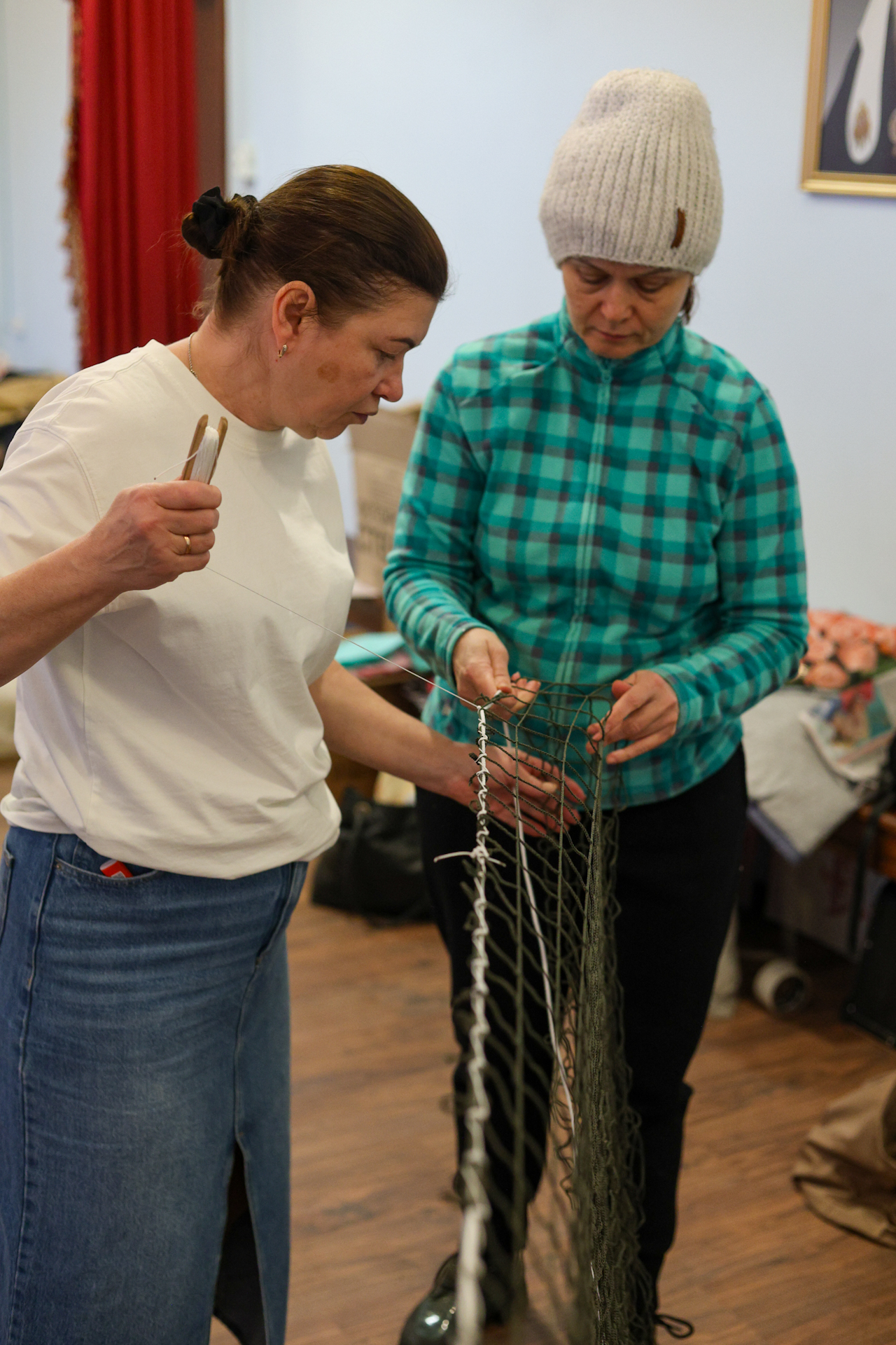 В преддверии празднования Дня добровольца в мастерской «Жуковяз» на приходе Вознесенского храма с. Барановское прошли мастер-классы по плетению маскировочных сетей для детей и взрослых.