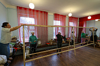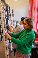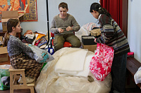 30 ноября мастерскую посетили прихожане Ильинского храма с. Петровское. Здесь они познакомились с полным циклом создания маскировочной сети от оплетения сетки до снятия и упаковки готовой. Также мастерицы показали другие изделия производимые в мастерской: трусы, подушки, шапки, снуды, вязанные носки и блиндажные свечи.