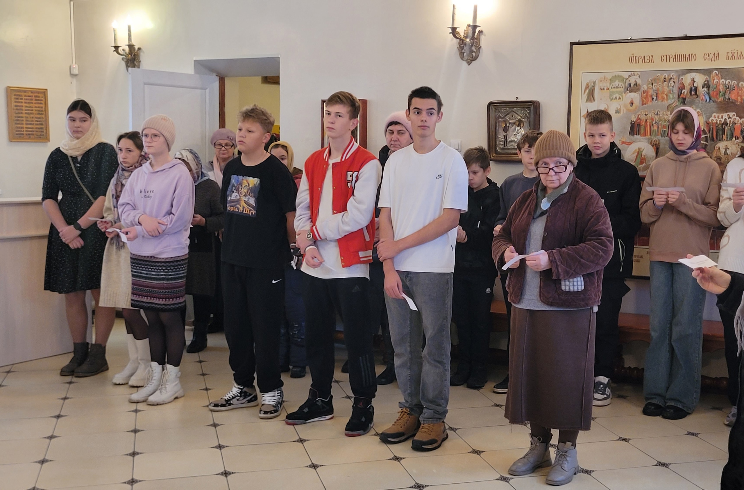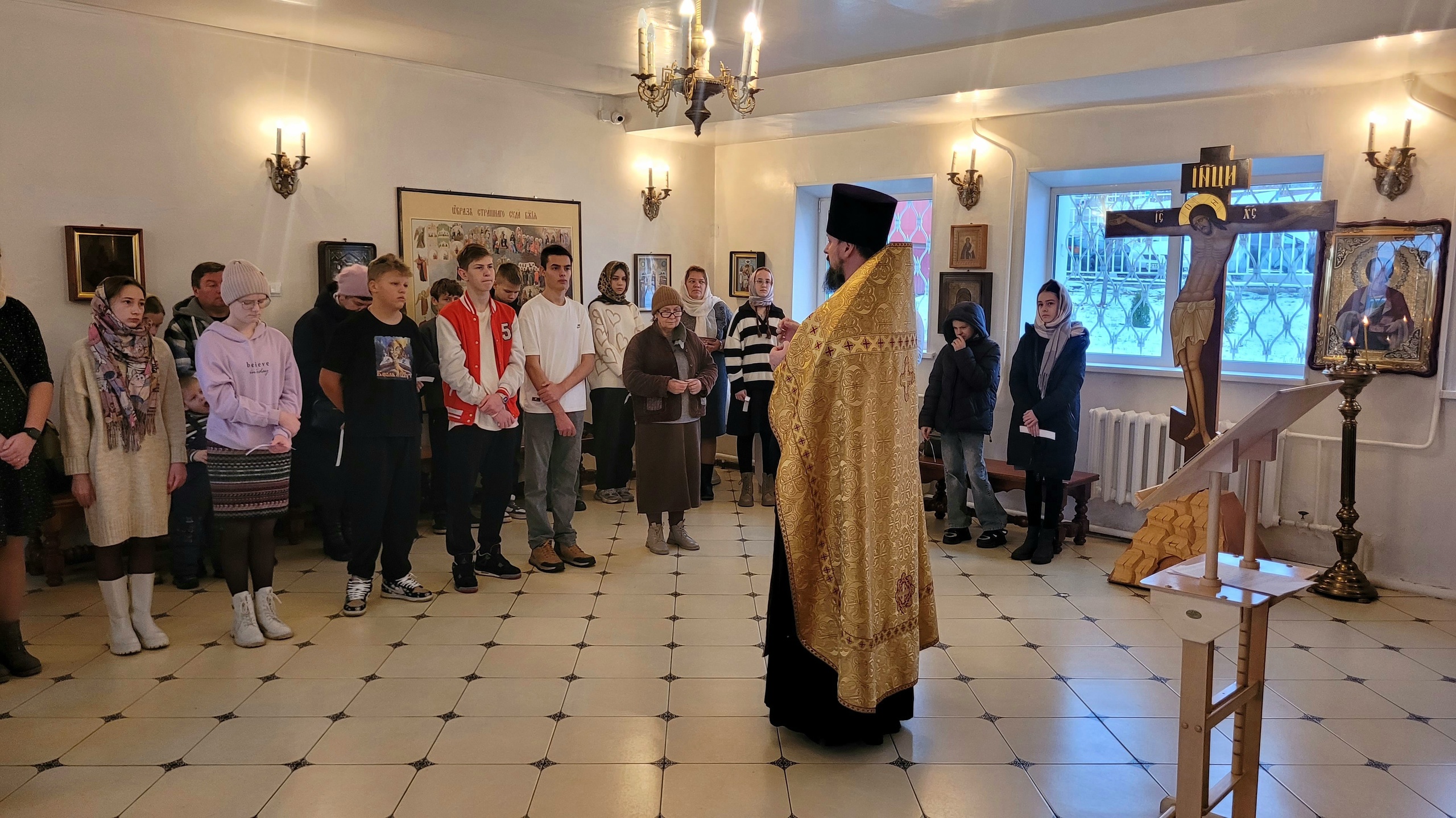 30 ноября в нижнем приделе Христорождественского храма состоялся молебен об учащихся. В богослужении приняли участие педагоги и учащиеся нескольких школ луховицкого округа. Перед началом богослужения благочинный 1-го Луховицкого округа,настоятель Христорождественского храма священник Александр Скабелин обратился к собравшимся с приветственным словом, в котором объяснил для чего нам нужна молитва и в чем проявляется образ Божий в человеке. После окончания молебного чина отец Александр провел небольшую экскурсию по Князь-Владимирскому храму, вручив каждому сладкие подарки.