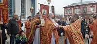 По окончании крестного хода, иерей Виталий Храмов поздравил прихожан с праздником и принёс в дар храму икону священномучеников Алексия и Сергия Амановых.