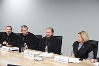 На встрече были рассмотрены основные направления социальной и просветительской деятельности профильных ведомств и епархий, представлены проекты докладов о соработничестве в текущем году.