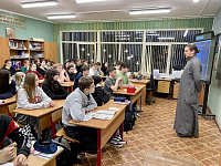 3 декабря состоялась встреча настоятеля Державного храма города Фрязино священника Димитрия Третьякова с учащимися 8 класса школы №3 наукограда.