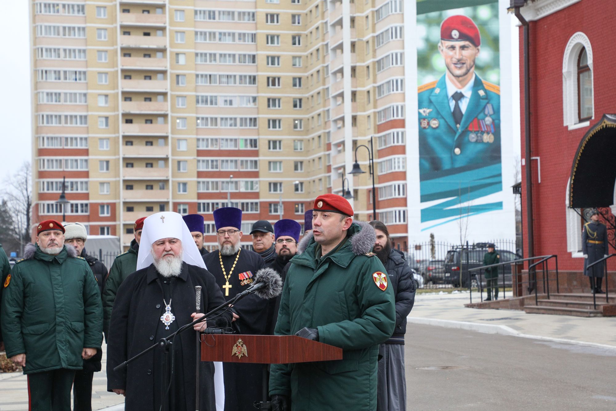 Перед началом церемонии по благословению епископа Балашихинского и Орехово-Зуевского Николая благочинный Балашихинского церковного округа священник Михаил Конюхов в присутствии председателя Синодального отдела по взаимодействию с Вооруженными Силами и правоохранительными органами митрополита Ставропольского и Невинномысского Кирилла и заведующего сектором Росгвардии Синодального отдела священника Романа Богдасарова совершил в Князь-Владимирском храме молебен святому равноапостольному князю Владимиру. Отцу благочинному сослужили помощник главного священника на СВО по Росгвардии протоиерей Святослав Чурканов, настоятель Князь-Владимирского храма протоиерей Максим Беликов, духовенство Балашихинского благочиния. В завершение молебного пения митрополит Кирилл вознёс молитву о Святой Руси.
