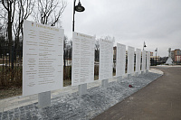 На мраморных плитах высечены имена 184 военнослужащих войск правопорядка и сотрудников Росгвардии, удостоенных высокого звания Героя Российской Федерации.