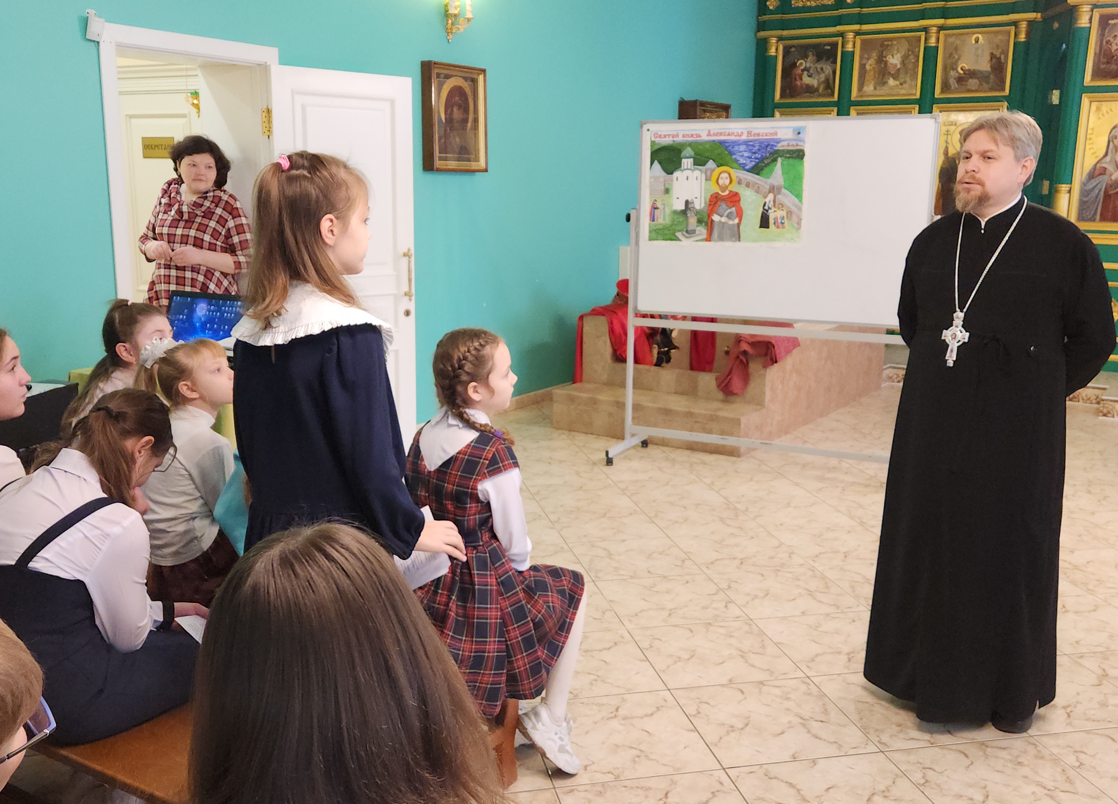 8 декабря в воскресной школе «Фавор» состоялось мероприятие, приуроченное ко Дню памяти святого благоверного великого князя Александра Невского. С приветственным словом к собравшимся обратились настоятель Александро-Невского храма протоиерей Сергий Кожевников и участник специальной военной операции Сергей.