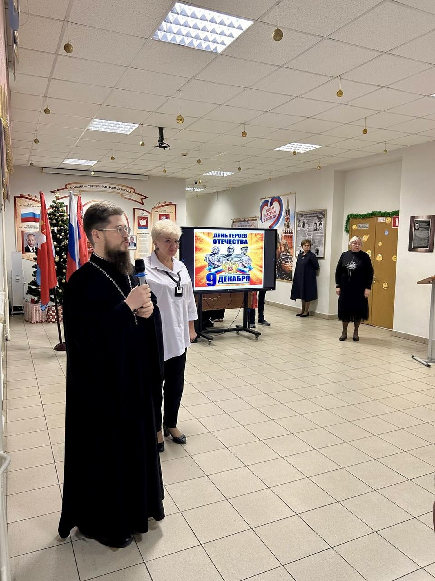 На мероприятии присутствовали почетные гости: настоятель Державного храма города Фрязино священник Димитрий Третьяков, участник боевых действий Василий Викторович Якимец.