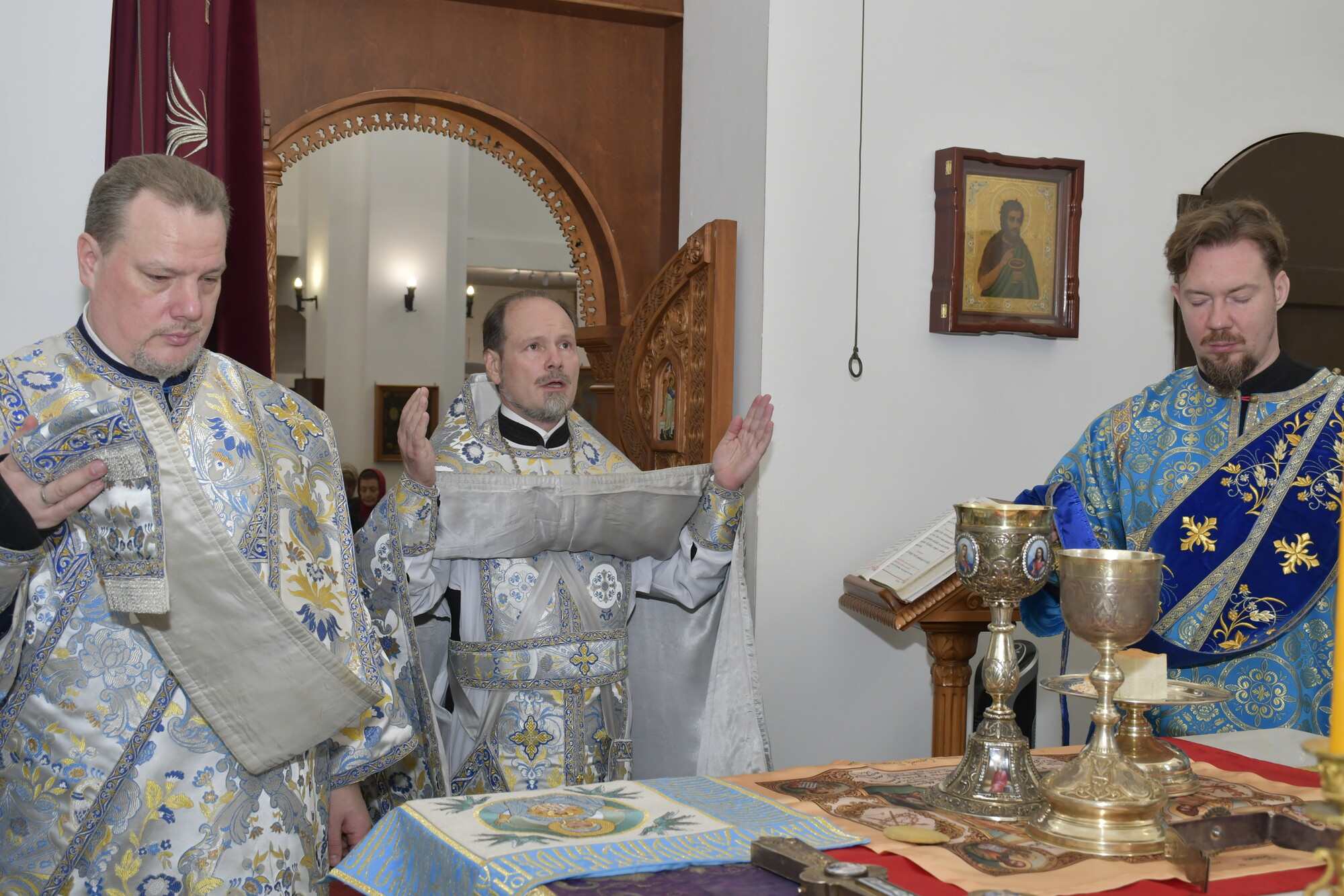 10 декабря, в день празднования иконы Божией Матери, именуемой «Знамение», в Преображенском храме г. Долгопрудный благочинный Долгопрудненского церковного округа протоиерей Андрей Хмызов возглавил соборное служение Божественной литургии.