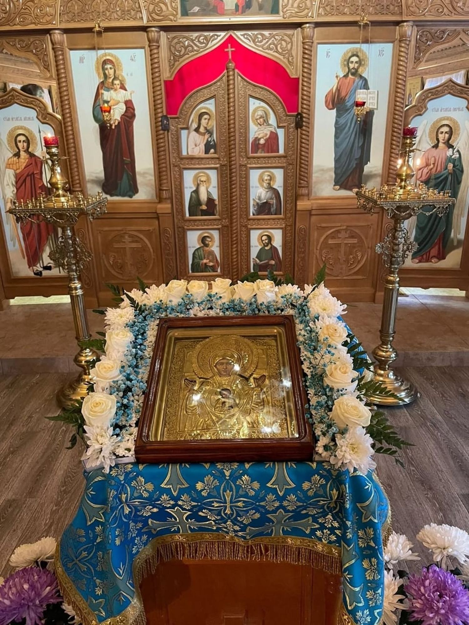 10 декабря, в день празднования иконе Божией Матери «Знамение», в Знаменском храме деревни Новое Божественную литургию совершил благочинный Ликино-Дулёвского церковного округа священник Антоний Рыжаков в сослужении благочинного Орехово-Зуевского церковного округа протоиерея Андрея Коробкова и настоятеля храма священника Бориса Самсонова.