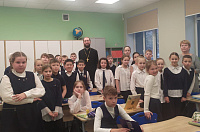 11 декабря клирик Богородицерождественского храма г. Королёва священник Иоанн Колчин провёл урок-беседу, посвященную 80-летию Победы в Великой Отечественной войне, с учениками 4"А" класса МБОУ СОШ №10.