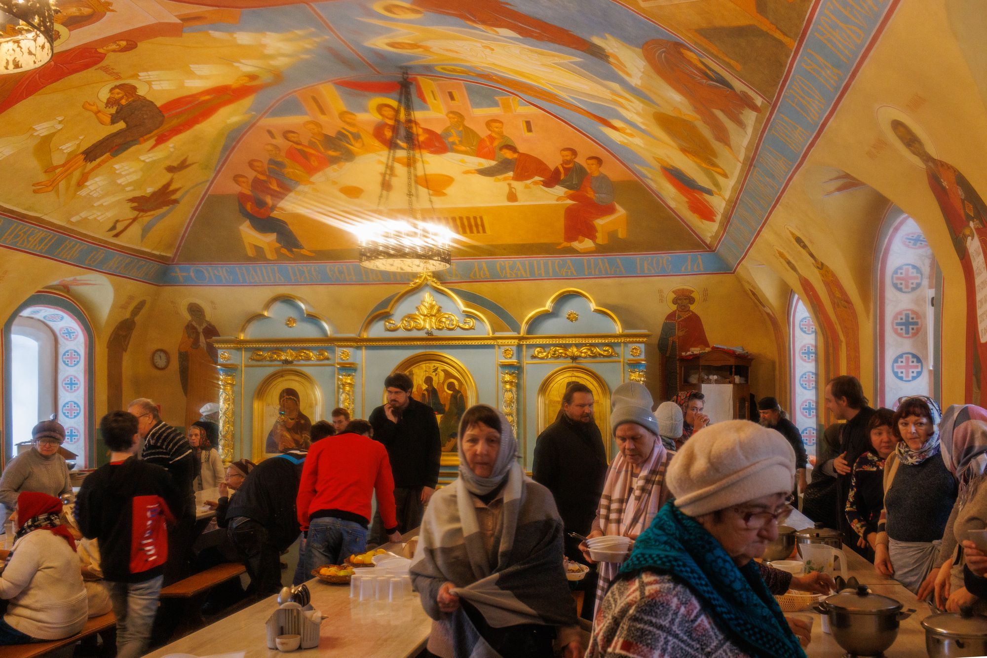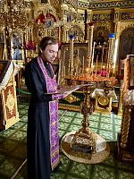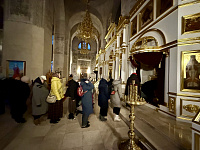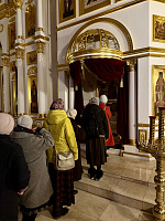 К воскресному Всенощному бдению коломенцы прибыли в Рождества-Богородичный Санаксарский мужской монастырь. В нём же прошла совместная молитва за воскресной Божественной литургией. После Богослужения и молитвы у мощей праведного воина Феодора Ушакова была организована трапеза.