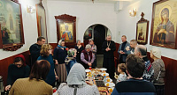 Священник Глеб Козлов ответственный по взаимодействию с медицинскими учреждениями, по благотворительности и социальному служению благочиния, совместно с координатором по больничному служению Романом Волковым подвели итоги уходящего года, представили план работы на следующий год. Встреча завершилась чаепитием.