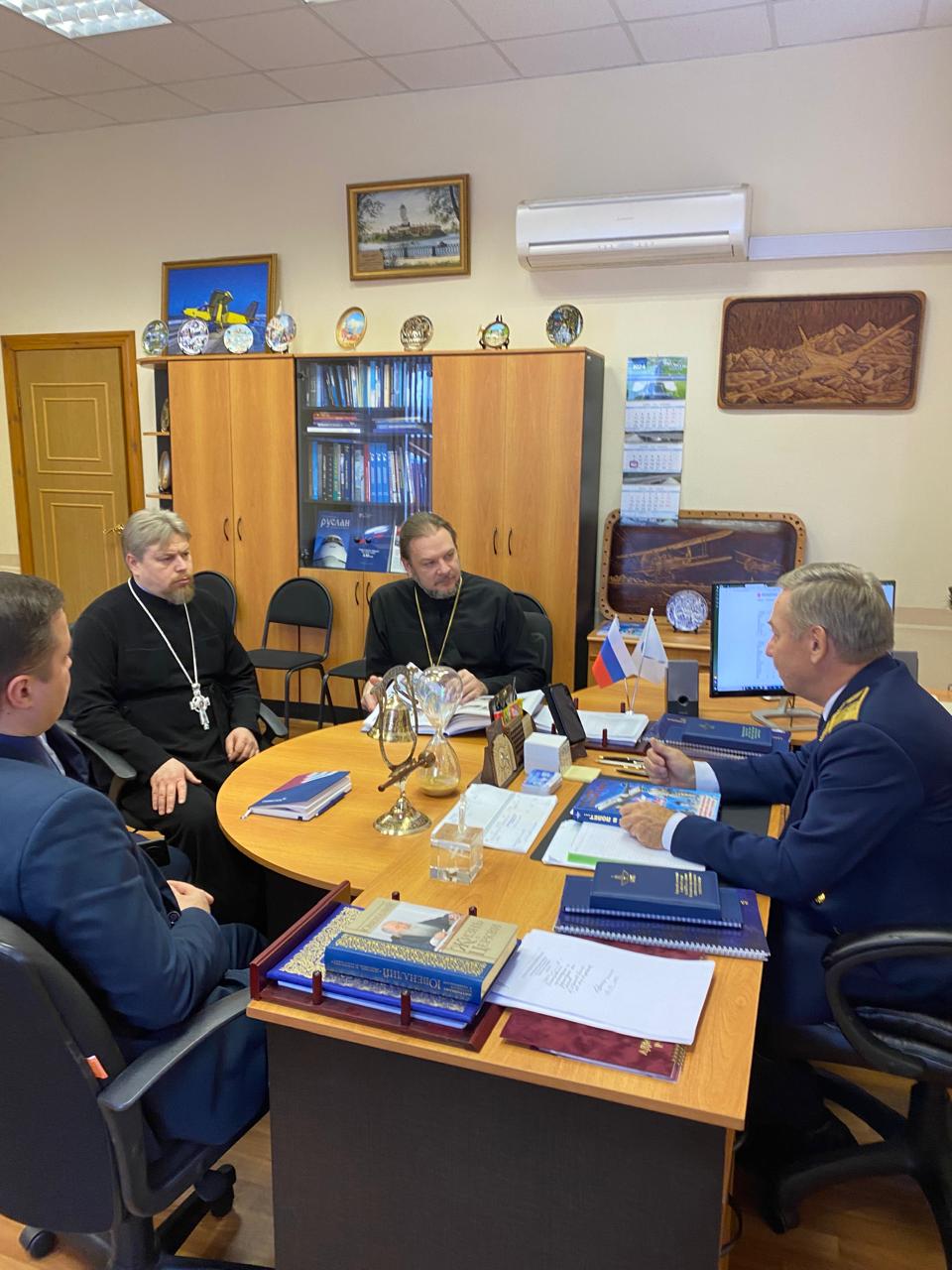 16 декабря 2024 г. в Егорьевском авиационном техническом колледже имени В.П. Чкалова г. Егорьевск состоялась рабочая встреча председателя Межъепархиального отдела по координации духовно-просветительской, образовательной деятельности Московской митрополии протоиерея Сергия Якимова и благочинного 1-го Егорьевского церковного округа протоиерея Сергия Кожевникова с директором образовательного учреждения Шмельковым А.В.
