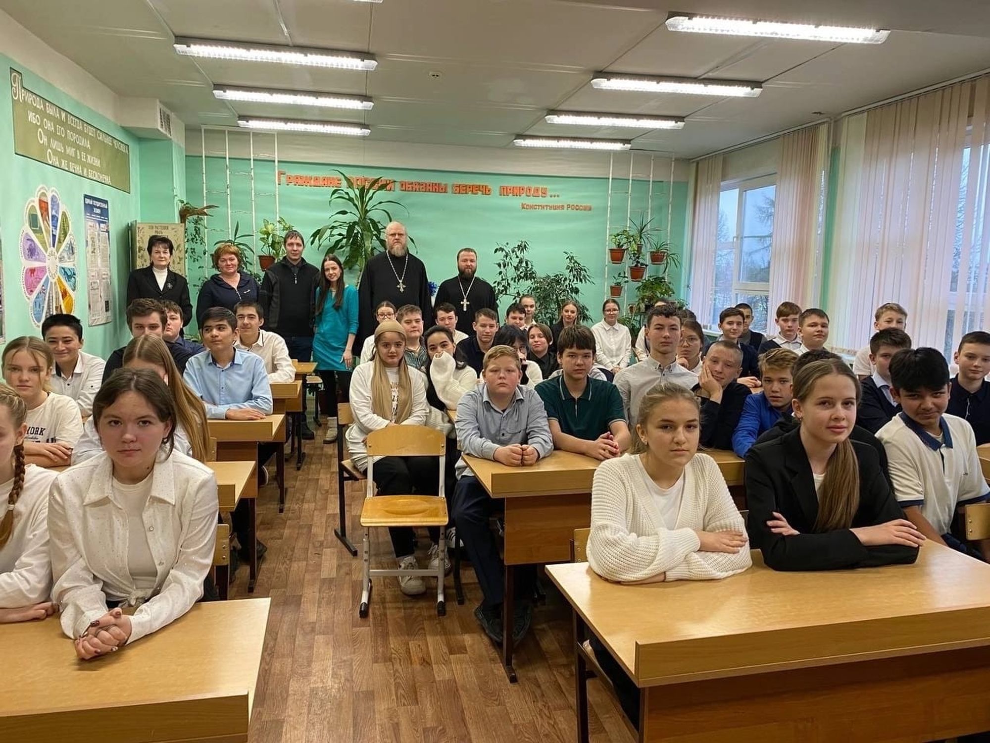 4 декабря в Рахмановской средней школе имени Е. Ф. Кошенкова состоялась встреча с учащимися старших классов, организованная ответственным по вопросам семьи, защиты материнства и детства в благочинии протоиереем Димитрием Босовым и ответственным по связям с медицинскими учреждениями священником Сергием Байковым.