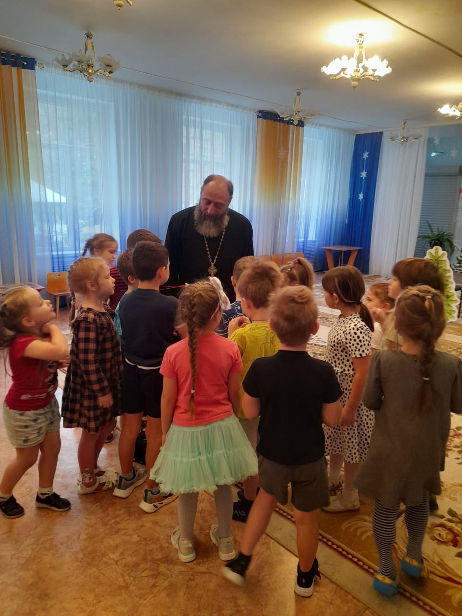 11 декабря состоялась встреча клирика Казанского храма города Павловский Посад протоиерея Владимира Владимирова с воспитанниками дошкольного отделения «Сказка» средней школы №10 имени В. Ф. Быковского города Павловский Посад. Отец Владимир рассказал детям о грядущем празднике Рождества Христова.